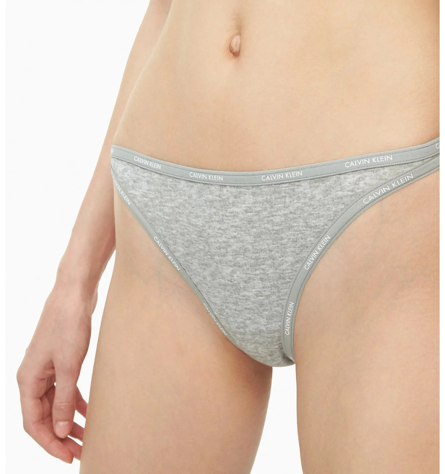 Nohavičky zdobí ikonický nápis Calvin Klein na elastickom páse a logo značky na boku. Vďaka stredne vysokému pásu tangá polichotí každej postave. Siahnite po trendy nohavičkách v melírovanie šedej alebo čiernej.