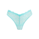 Neobvyklá kombinácia nevinnej modrej čipky a odvážneho, vykrojeného strihu. Pôvab dodáva malá mašlička. Použitie bavlnenej stielky zaručuje najvyšší komfort