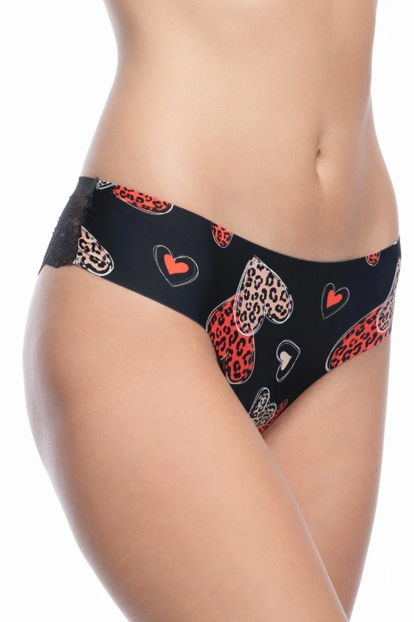 Pre dámy, ktoré sa chcú cítiť zvodne, odporúčame. Brazílky so sexi krajkovým chrbtom, zatiaľ čo permanentná potlač v podobe srdiečok sa dokonale hodí do valentínskej nálady. Zloženie 89% polyamid, 10% elastan, 1% bavlna.