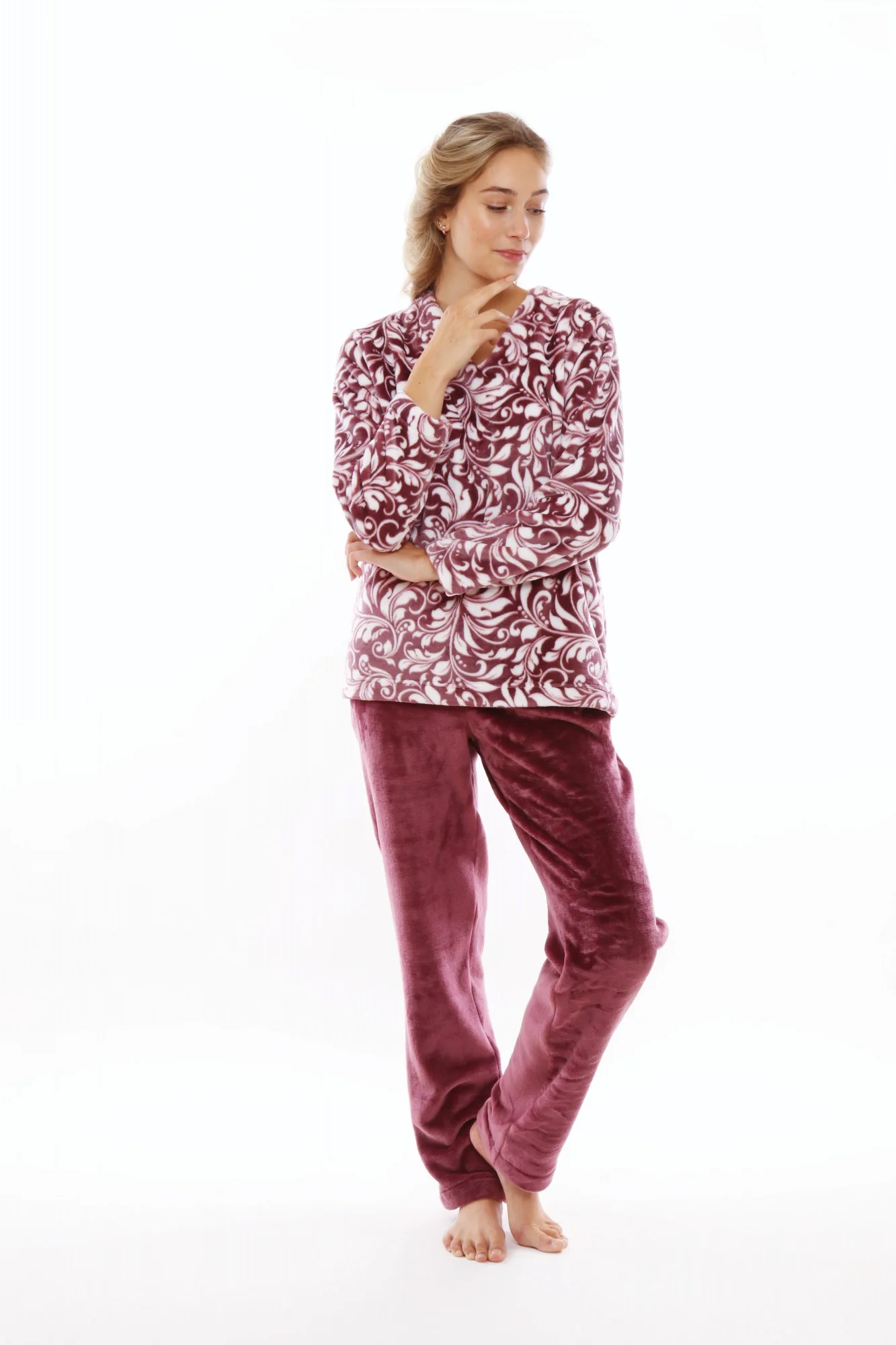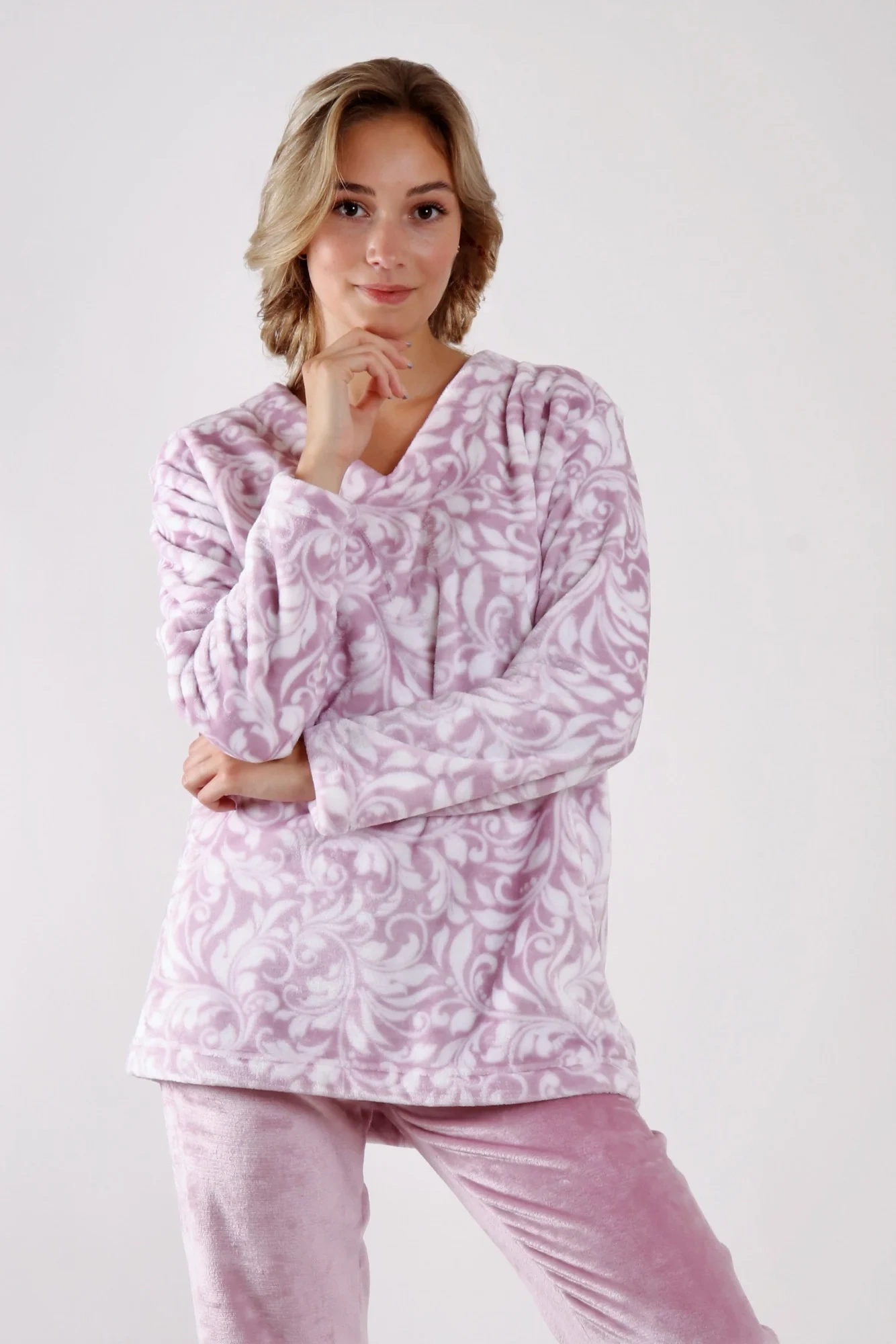 Dámsky teplý domáci oblek - teplé pyžamo. Hodvábne mäkký, príjemne hrejivý flanelový flísový materiál.