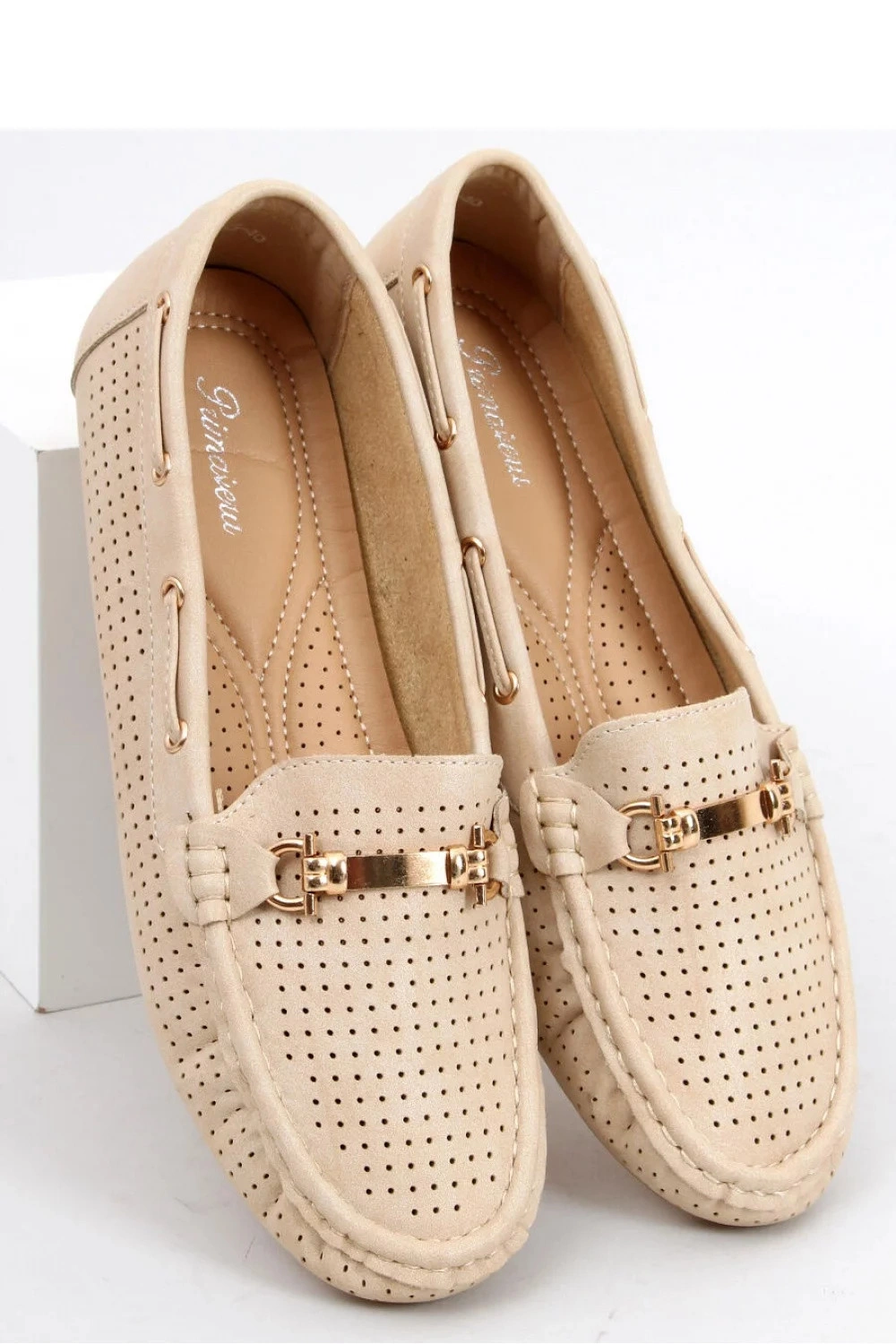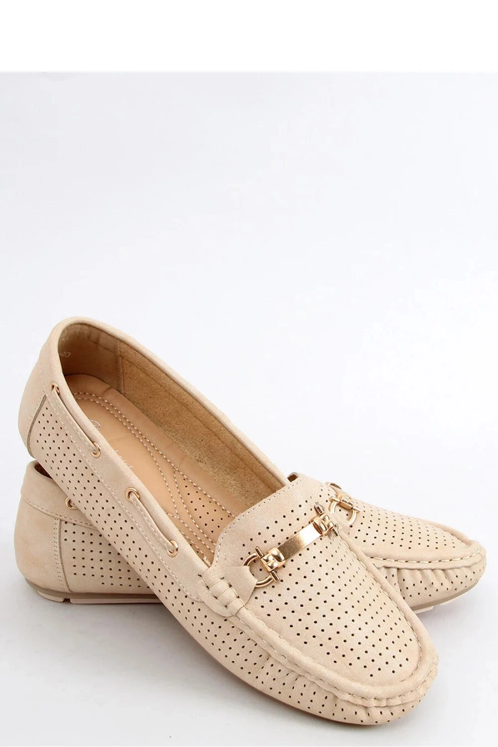 Dámske azúrové mokasíny. Tento nadčasový model má elegantný strih s jemným prešívaním a štýlovou zlatou ozdobou. Každodenné pohodlie zaisťuje mäkká polstrovaná stielka. Čakajú na vás :) Vonkajší materiál? ekologická koža.
