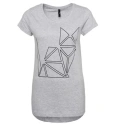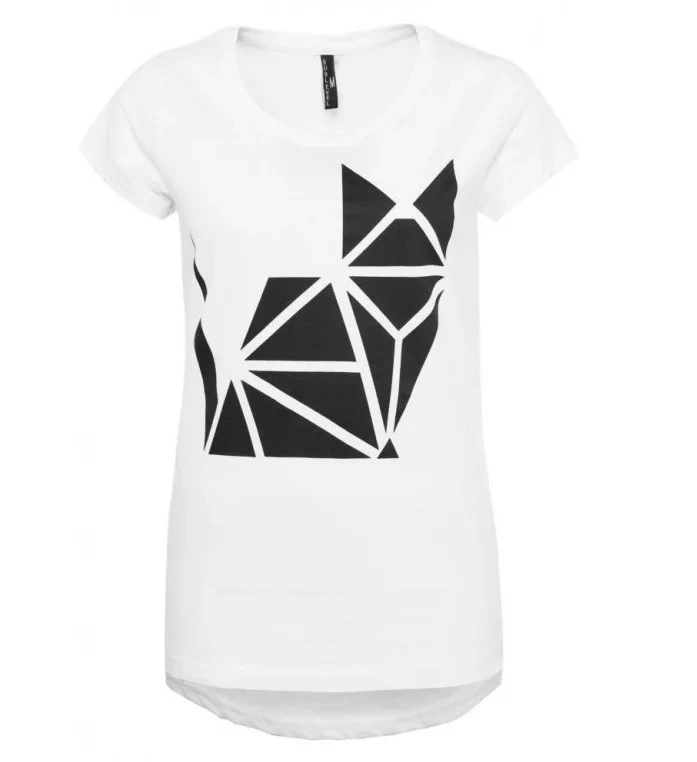 Tričko má na prednej strane potlač mačky origami.