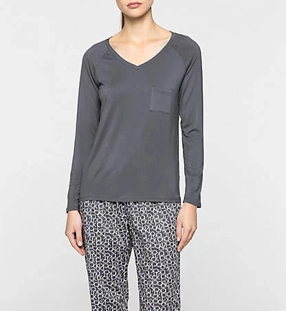 Dámsky pyžamový top L/S CURVE NECK 000QS7006E FSR make-up - Calvin Klein
