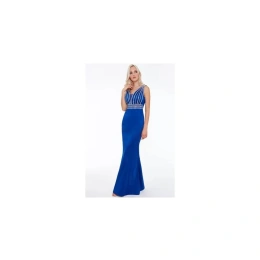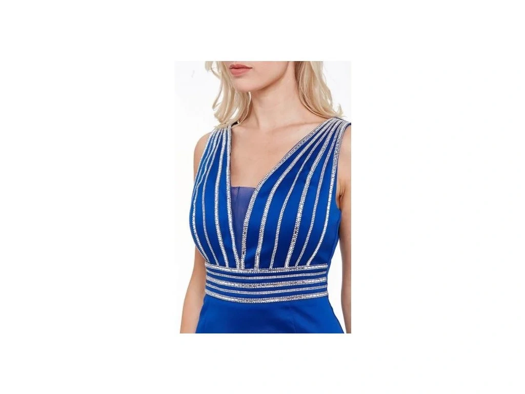 Šaty majú vzadu skrytý zips. Sú dlhé a majú véčkový výstrih. Večerné šaty majú elegantný strih a dizajn. Výstrih je zdobený kamienkami.