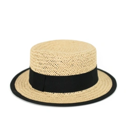 Ažúrový letný klobúk. Vyrobené z prírodných materiálov. Šilt s nastavením na chrbte. Veľmi ľahká, na hlave vyzerá skvele. Vytvorené pre milovníkov klobúkov s krátkou krempou.