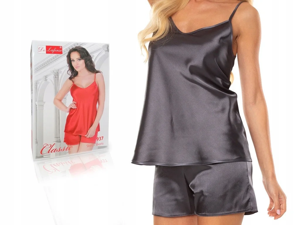Krásny saténový set / pyžamo. Košeľa na úzkych ramienkach. Spodnú časť pyžama tvoria šortky.