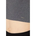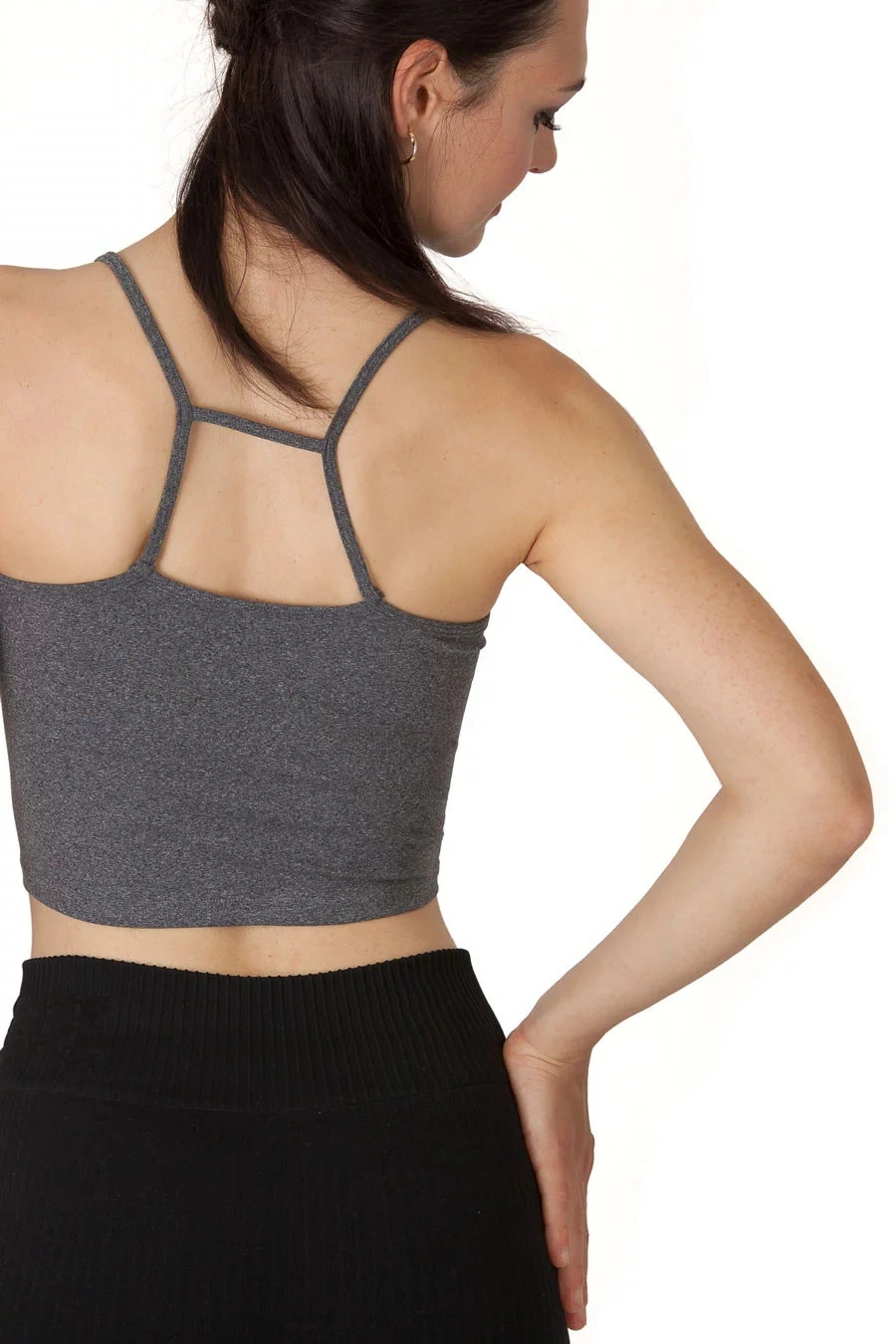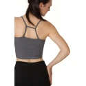 Dámsky krátky top na špagetové ramienka, vzadu ramienka rafinovane spojené. Na boku topu našité logo.