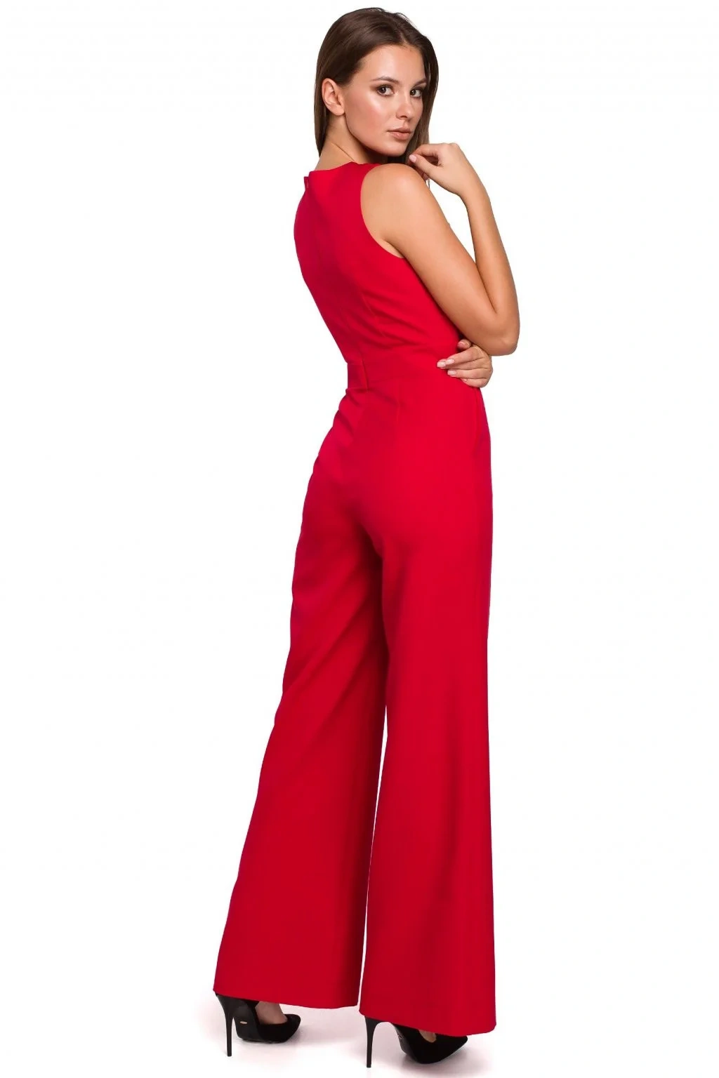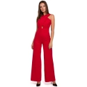 Originálny spoločenský overal, zaujímavá náhrada šiat na spoločenské príležitosti. Prekrížená predná časť, skrytý zips na chrbte, široké nohavice.