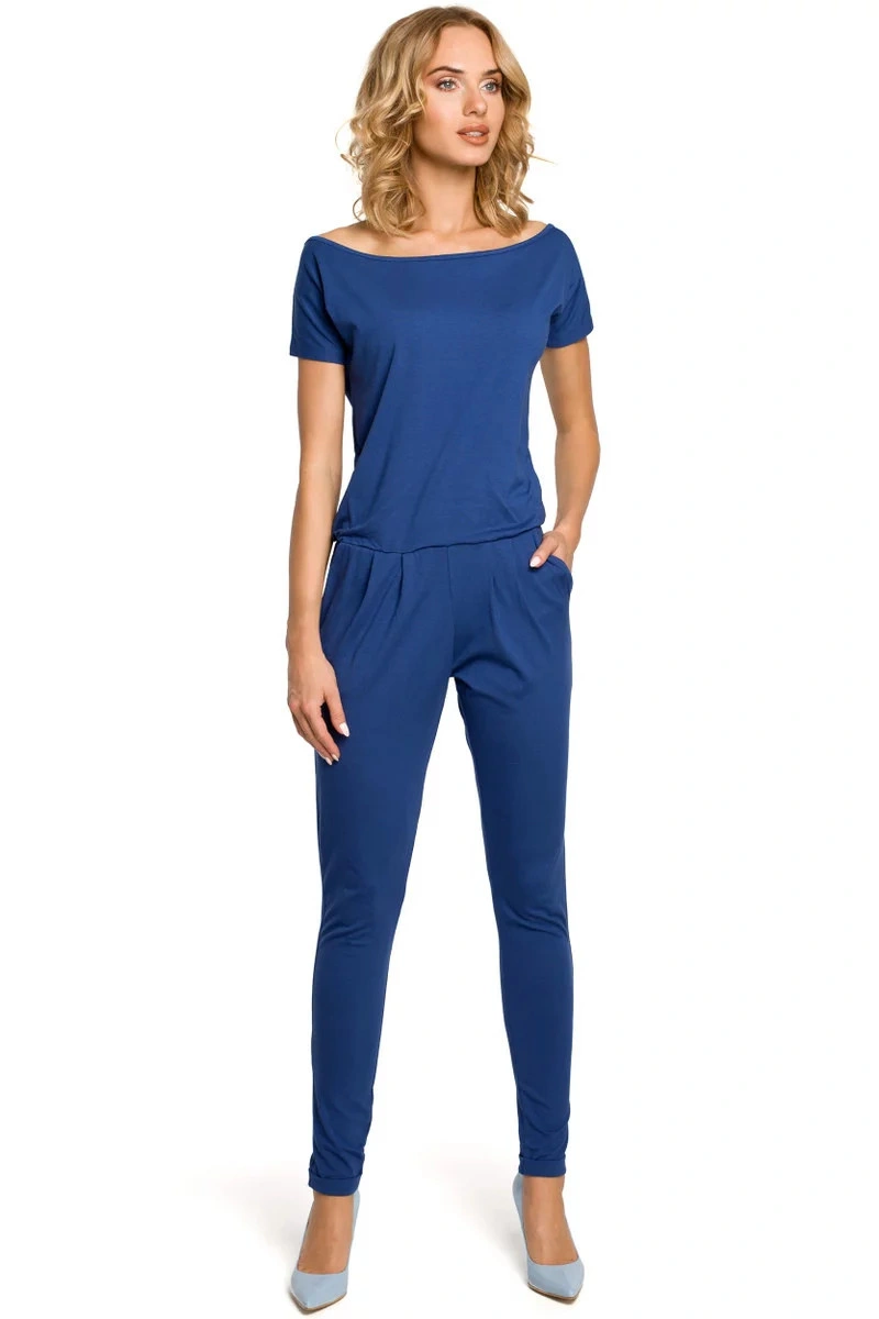Tkaný overal s krátkymi rukávmi a elastickým pásom.