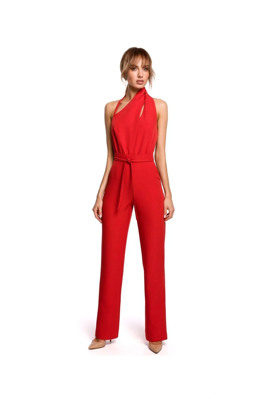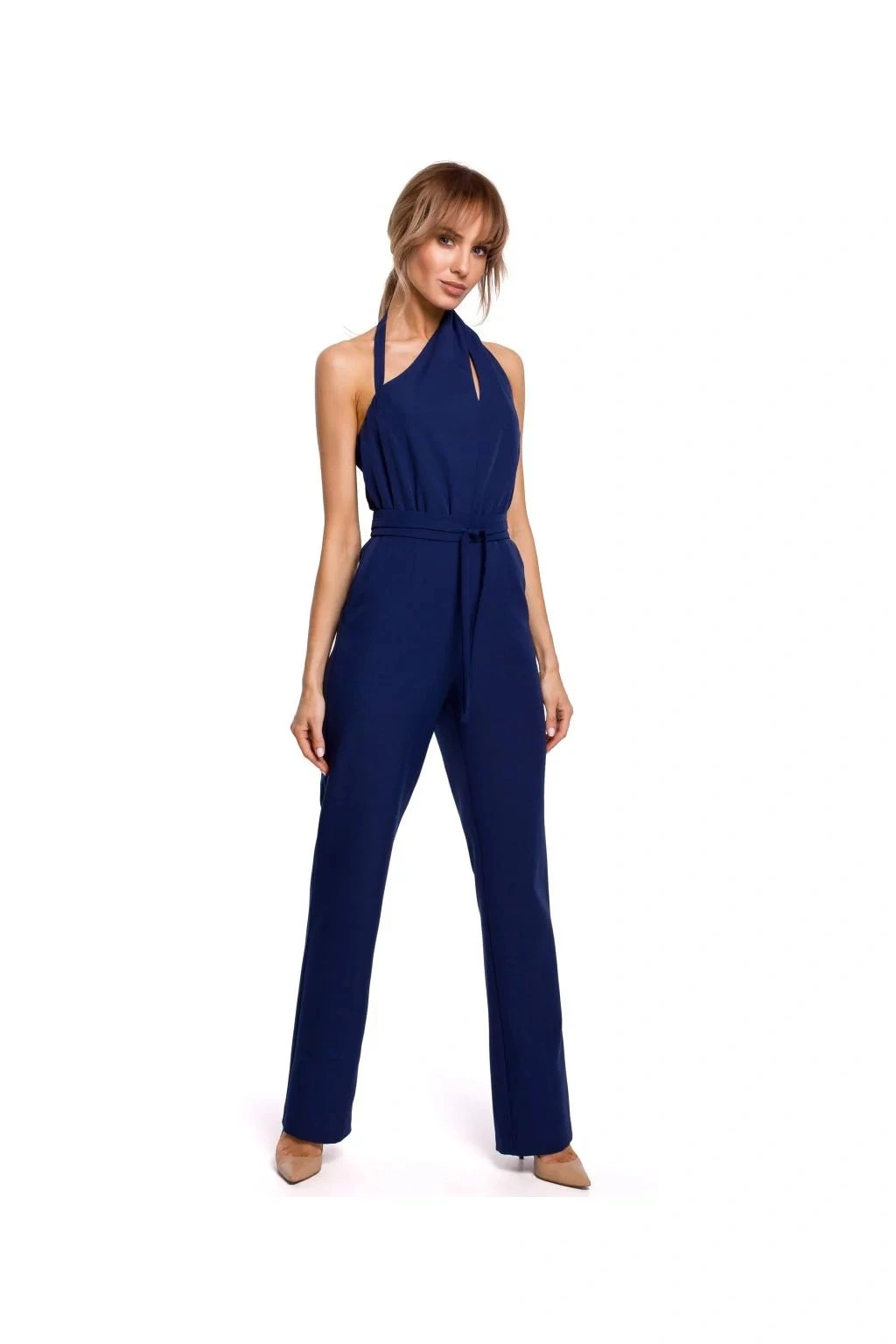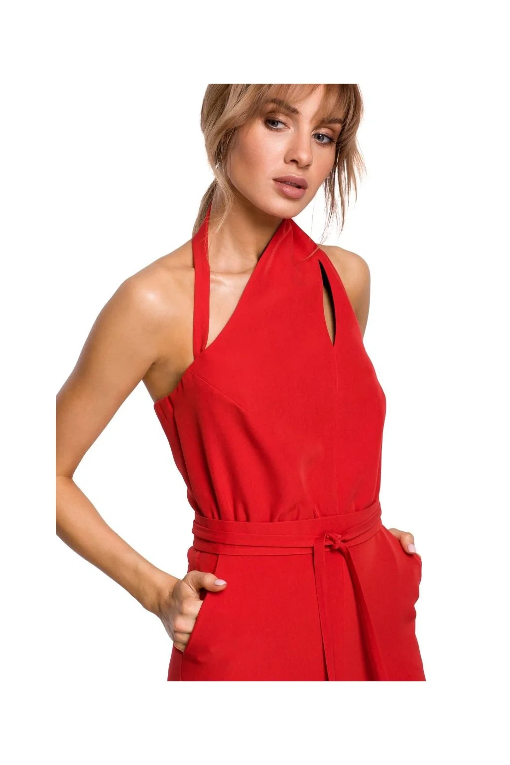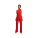 Táto kombinéza má viac ako jednu tvár. Vďaka obálkovému výstrihu a šálovému golieru, 7/8 dlhým rukáv