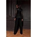Kombinéza Asurio je ideálnou voľbou pre ženy, ktoré sa cítia pohodlnejšie v nohaviciach ako v šatách. Kombinéza je vyrobená z látky posiatej flitrami. Má elastickú podšívku, ktorá chráni pred poškriabaním. Model s dlhými, širokými nohavicami, asymetrickým výstrihom je pokrytý bohatým množstvom flitrov. Nezáleží na tom, kam sa chystáte, na večierok, do klubu alebo na veľký ples, elegantná maxi kombinéza Asurio vám na Silvestra zabezpečí pohodlie a dodá šarm. Stačí k nej zvoliť moderné minimalistické doplnky a okamžite vytvoríte neprehliadnuteľný vzhľad. Elegantná maxi kombinéza Asurio urobí taký skvelý dojem, že úspešne nahradí večerné šaty. Výrobok je vyrobený a ušitý v Poľsku.