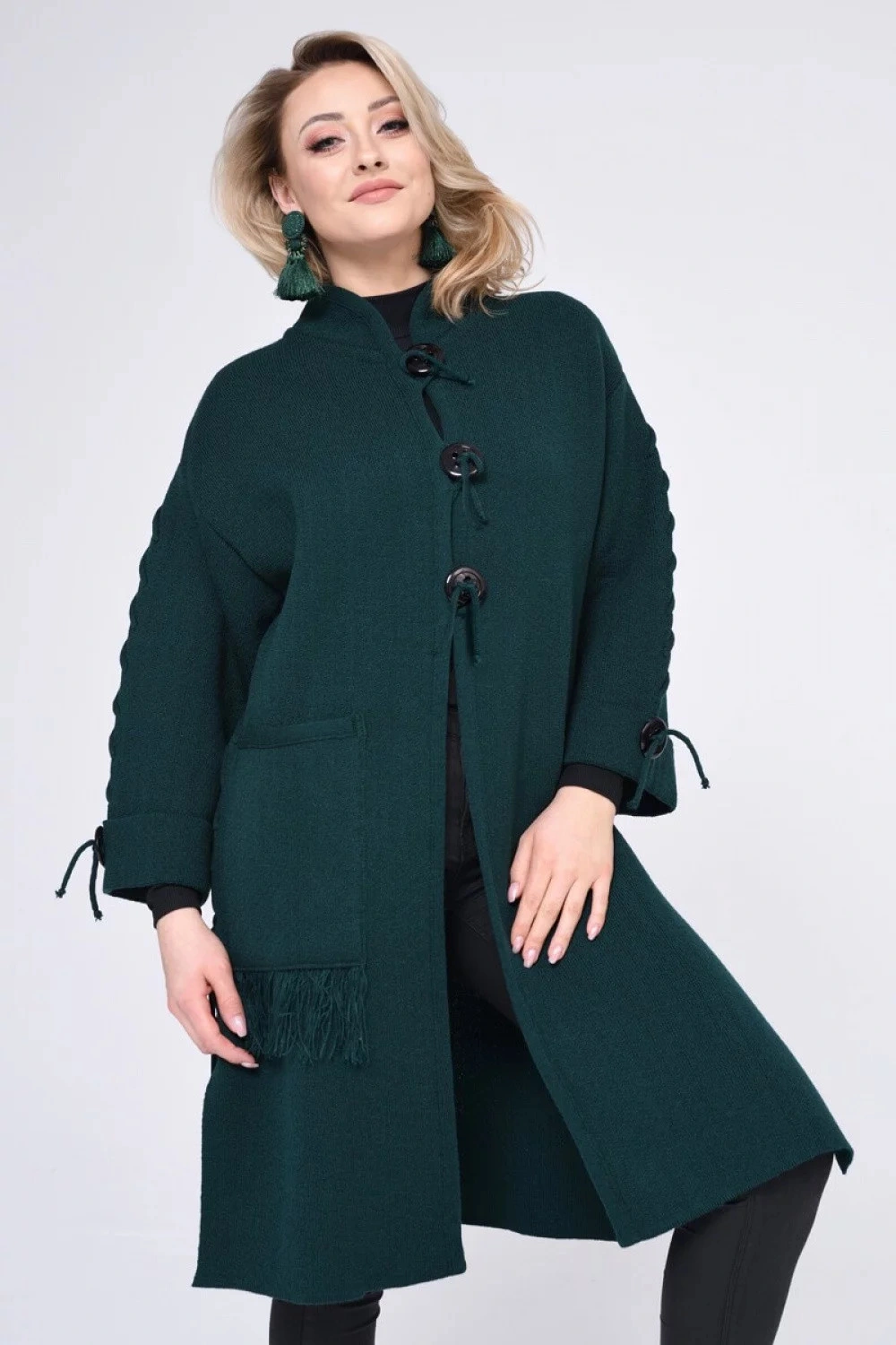 Midi kabát s bočnými vreckami zapínanie na gombíky ozdobné aplikácie na hrudi rukávy zakončené manže