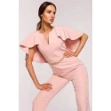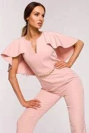 Tento jednodielny overal s efektom plášťa na chrbte a retiazkou vpredu určite upúta pozornosť. Naša modelka je vysoká 171 cm a nosí veľkosť S.