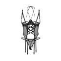 Silný, odvážny a neodolateľne zmyselný - komplet, ktorý roznieti predstavivosť. Korzet z lesklej látky a sieťoviny krásne tvaruje siluetu, zatiaľ čo krížové ramienka vpredu a vzadu zdôrazňujú jeho zvodný charakter. Košíčky s kosticami dodávajú poprsiu nádherný tvar, zatiaľ čo tangá bez rozkroku dodávajú provokatívny nádych. Kolekcia Dominna spája moderný dizajn s odvážnym pikantným pôvabom.