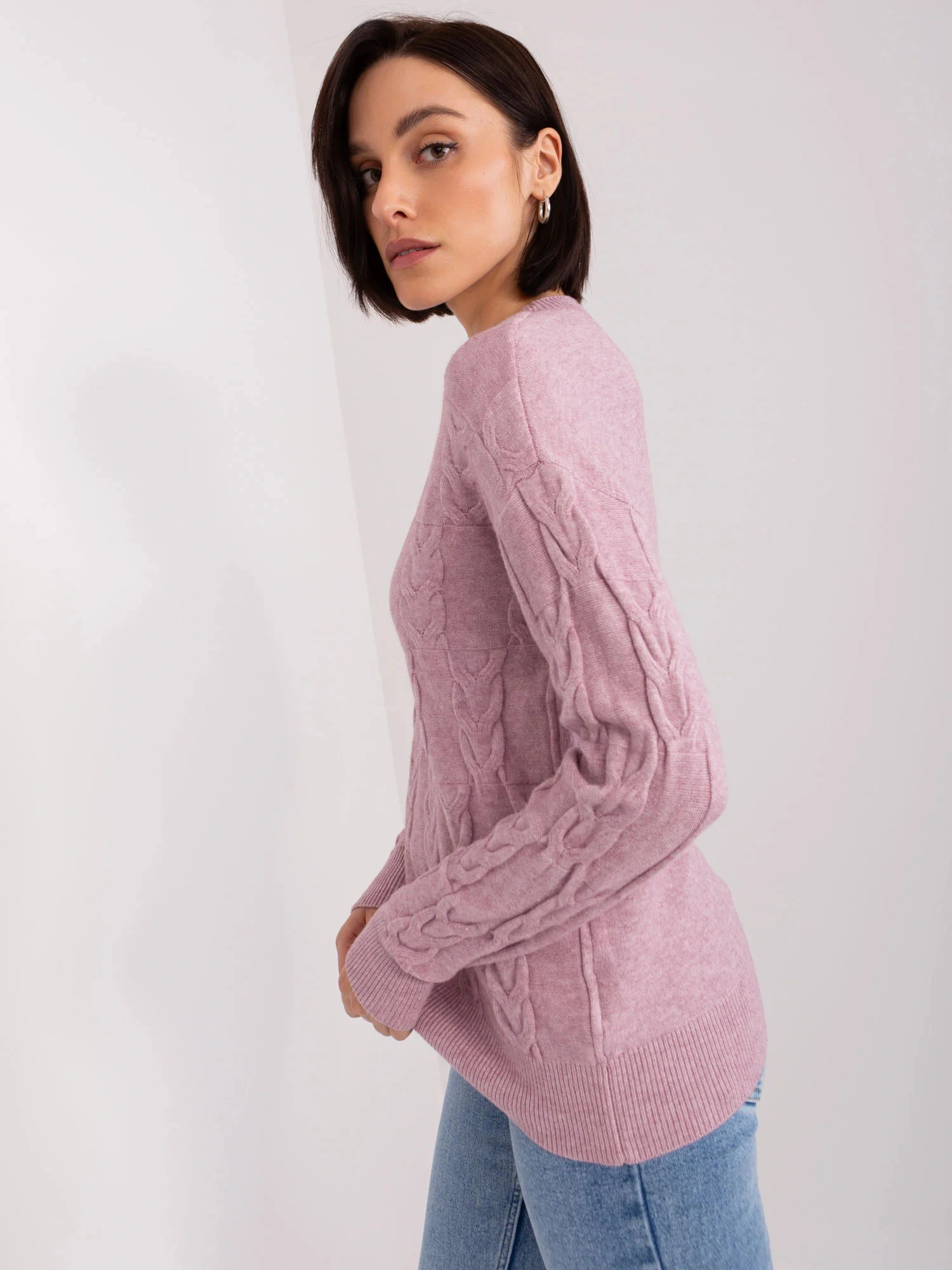 Svetlo fialový dámsky károvaný sveter.