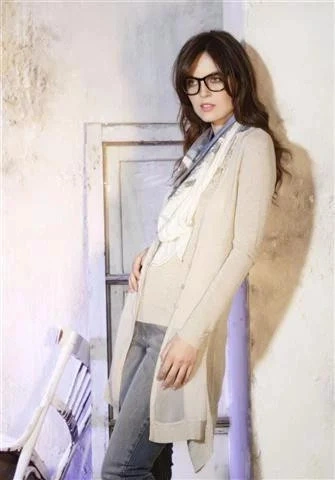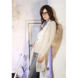 Dlhý svetrík voľného strihu bez zapínania vpredu. Prezentovaný model má dlhé rukávy, vrecká a kapucň