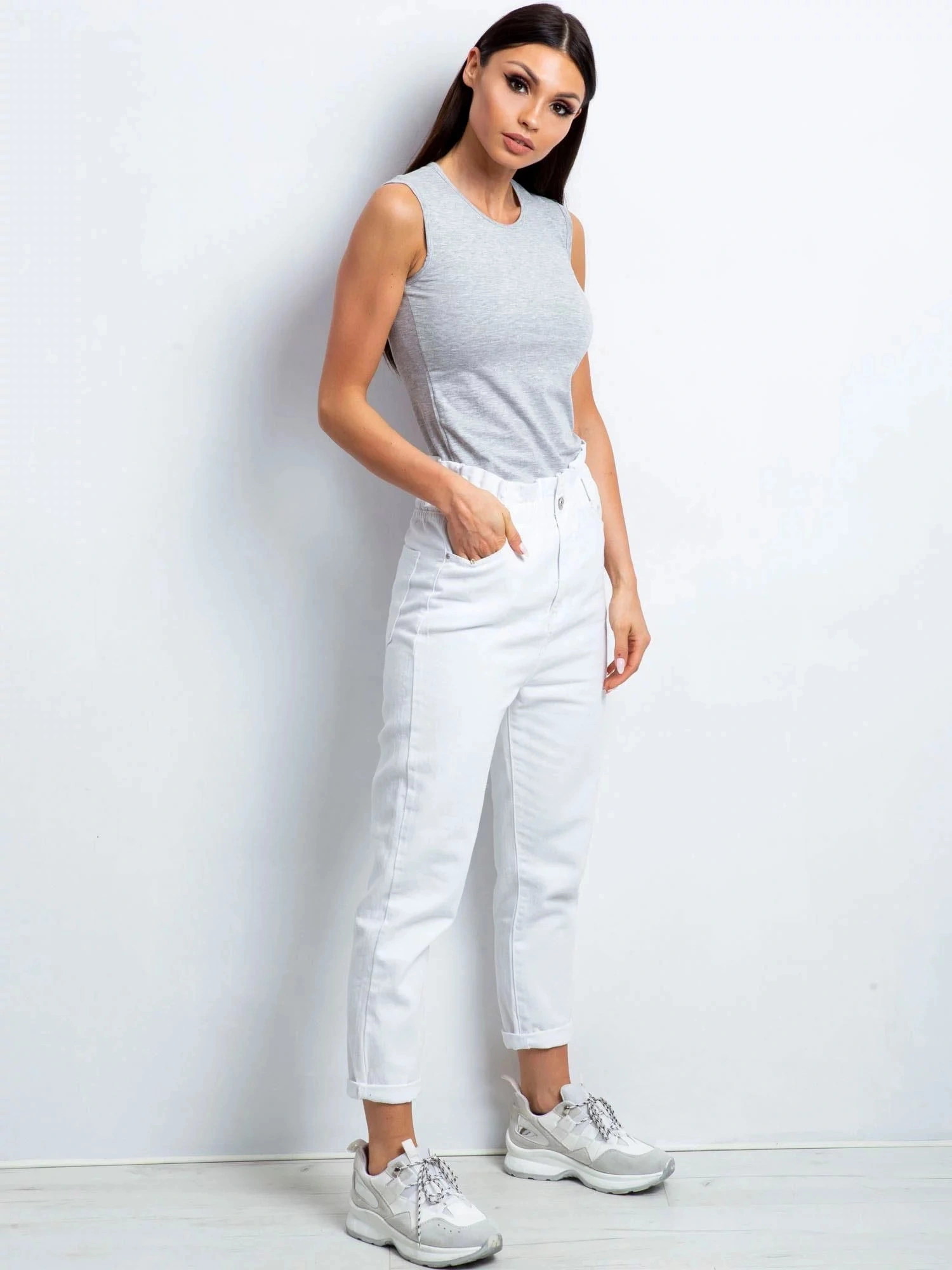 Bavlnený top v sivej farbe.