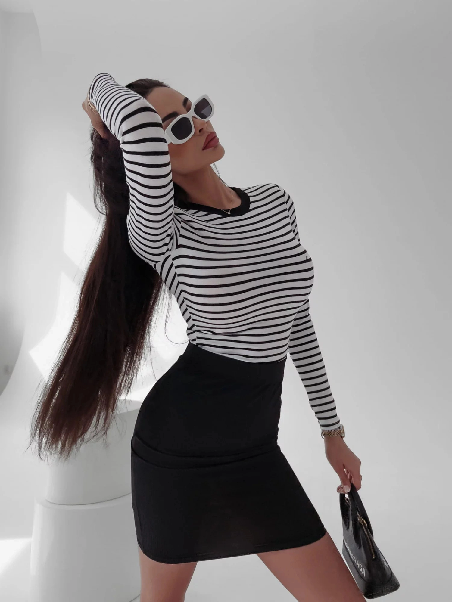 - čiernobiely pruhovaný vzor sa skvele hodí ako k elegantnej ceruzkovej sukni, tak k športovým džínsovým šortkám