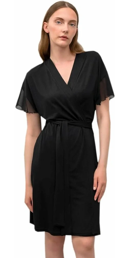 Dámsky župan pre pocit pohodlia, krásy a nehy. Župan je vyrobený z mikromodalu a elastanu. Oba typy tkanín poskytujú vysoký komfort, príjemný pocit, priedušnosť a odolnosť, zatiaľ čo mikromodal poskytuje vyššiu ľahkosť a pružnosť.