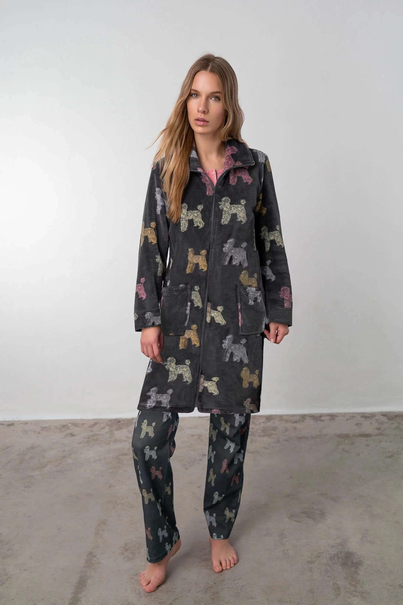 - farba a vzor: dark gray (tmavo šedá), potlač psíkov