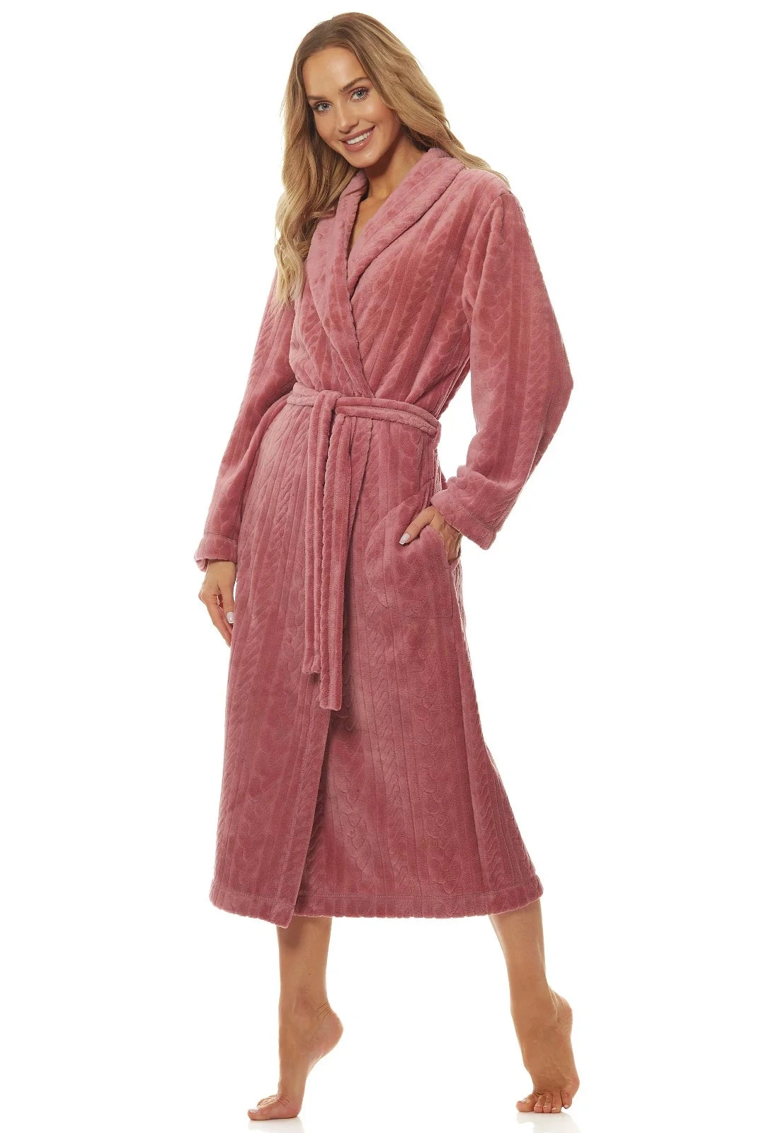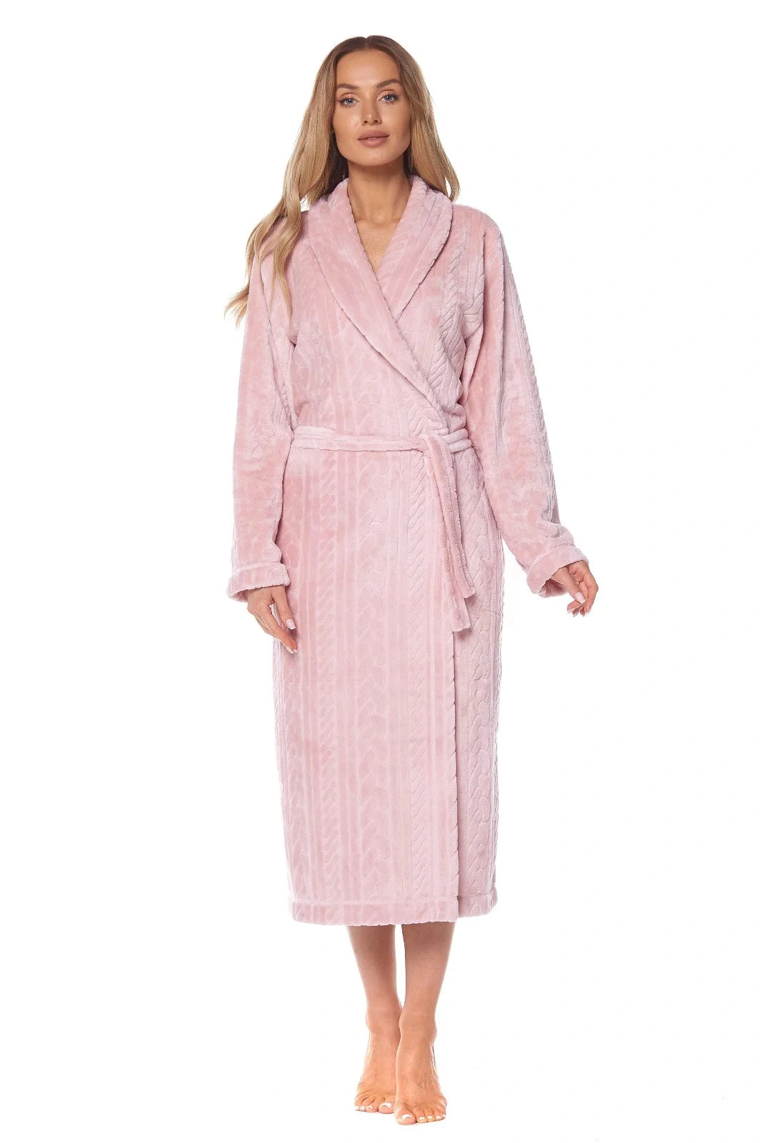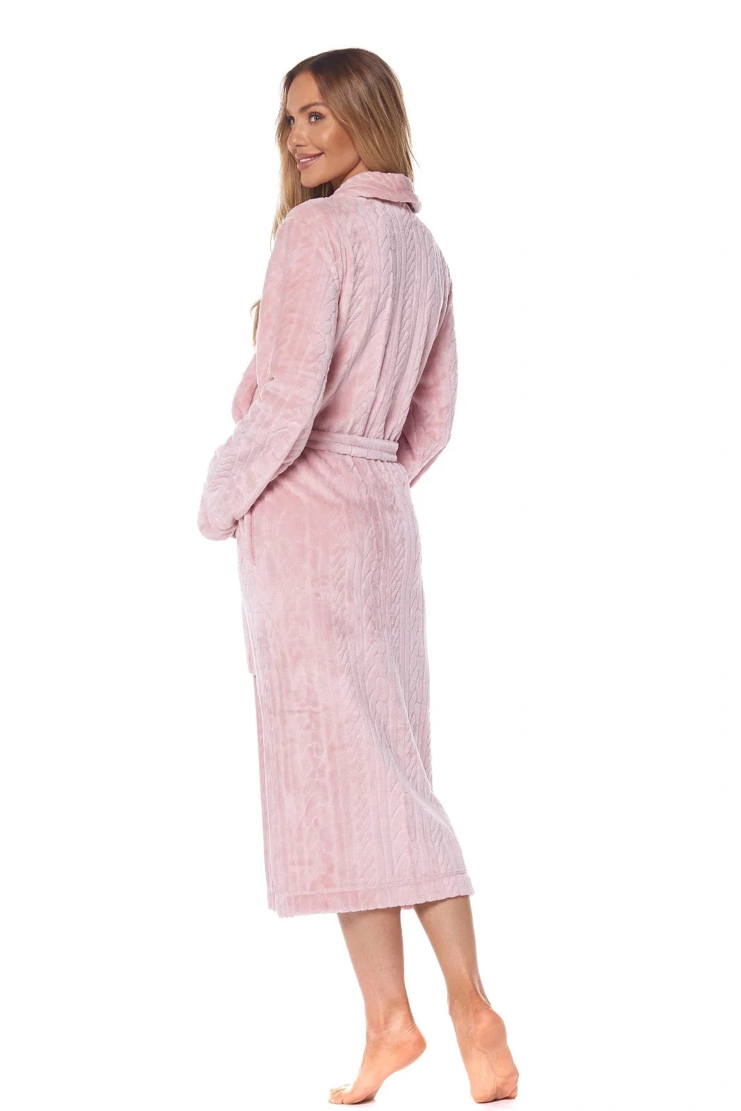 Dlhý dámsky župan - so šálovým golierom - zaväzuje sa v páse - s vreckami na bokoch - príjemný mater
