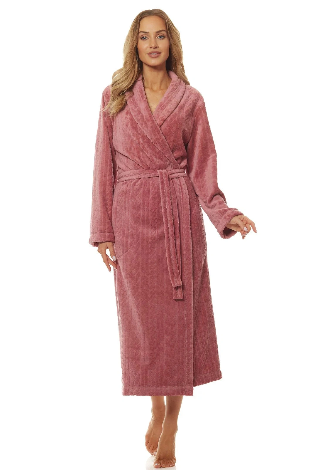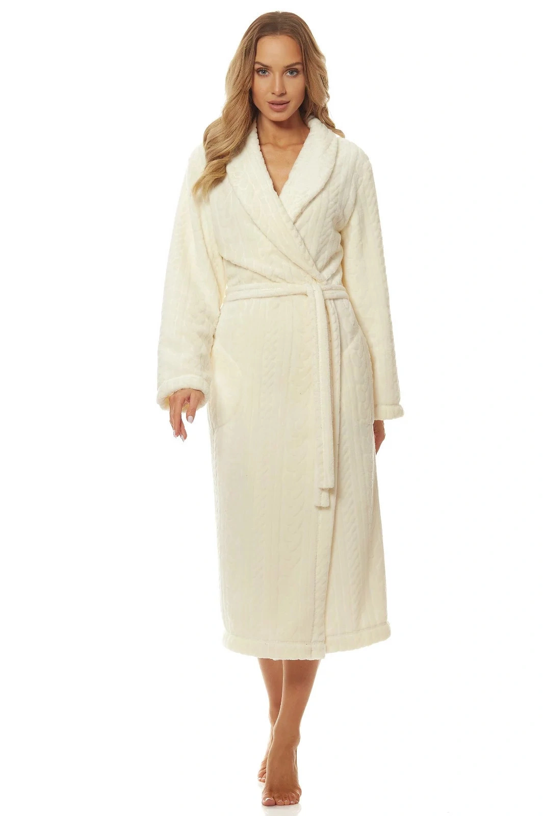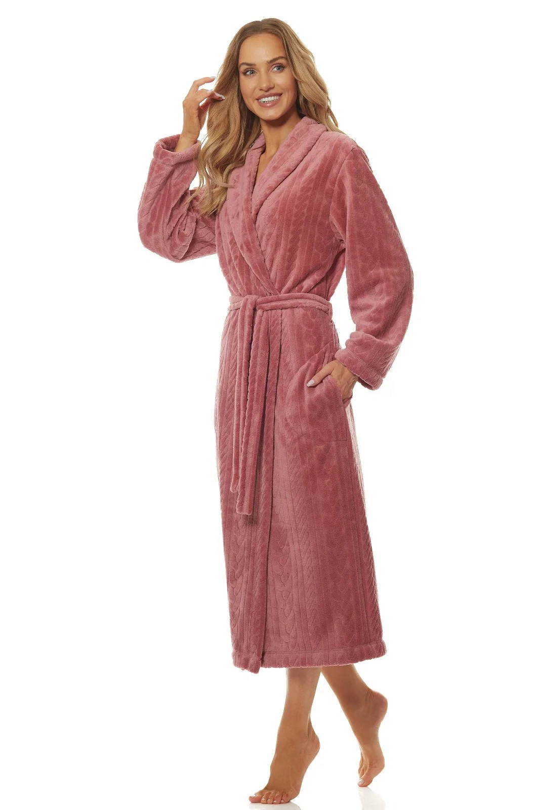 Dlhý dámsky župan - so šálovým golierom - zaväzuje sa v páse - s vreckami na bokoch - príjemný mater