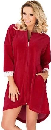 Dámsky viskózový župan so zaväzovaním v páse. Okraje sú zdobené čipkou. Rukávy sú 3/4 dlhé. Zloženi