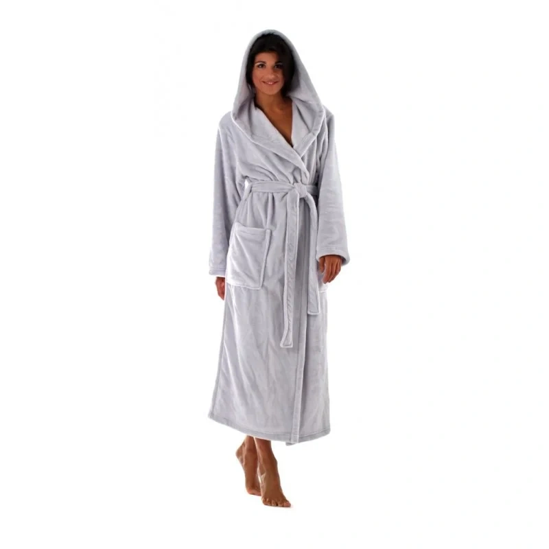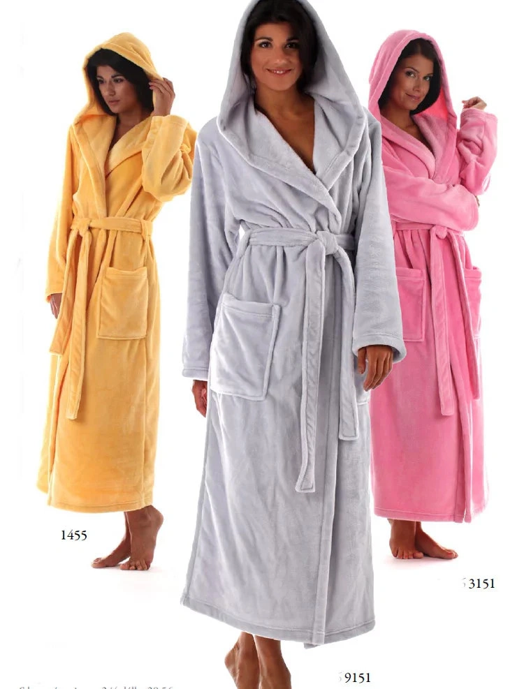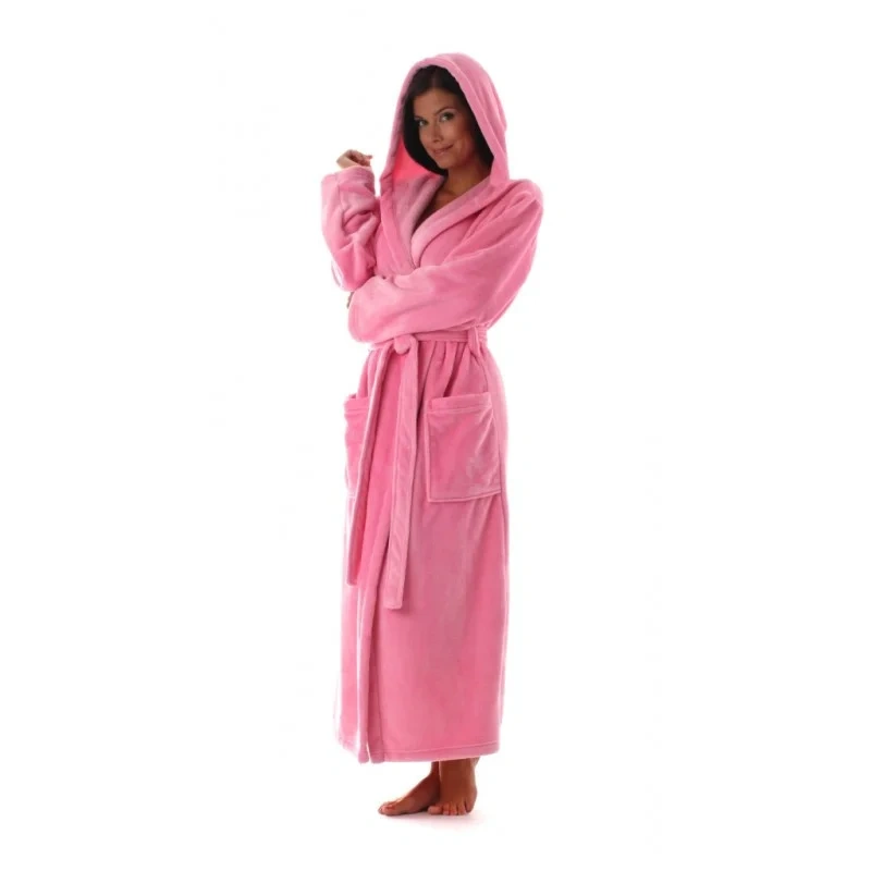 Vysoko kvalitný dlhý dámsky mäkký župan - Zaväzovanie v páse - kapucňa - vrecko Materiálové zloženie