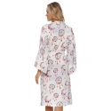 Bambusový župan s krásnym vzorom uviazaný v páse. V štýle HOMEWEAR, ideálny pri relaxácii ako pohodlné domáce oblečenie, na pláž, na letné večery, vyrobené z bambusovej viskózy najvyššej kvality. Nádherný ženský strih s opaskom v páse a jemnými rázporkami na rukávoch.