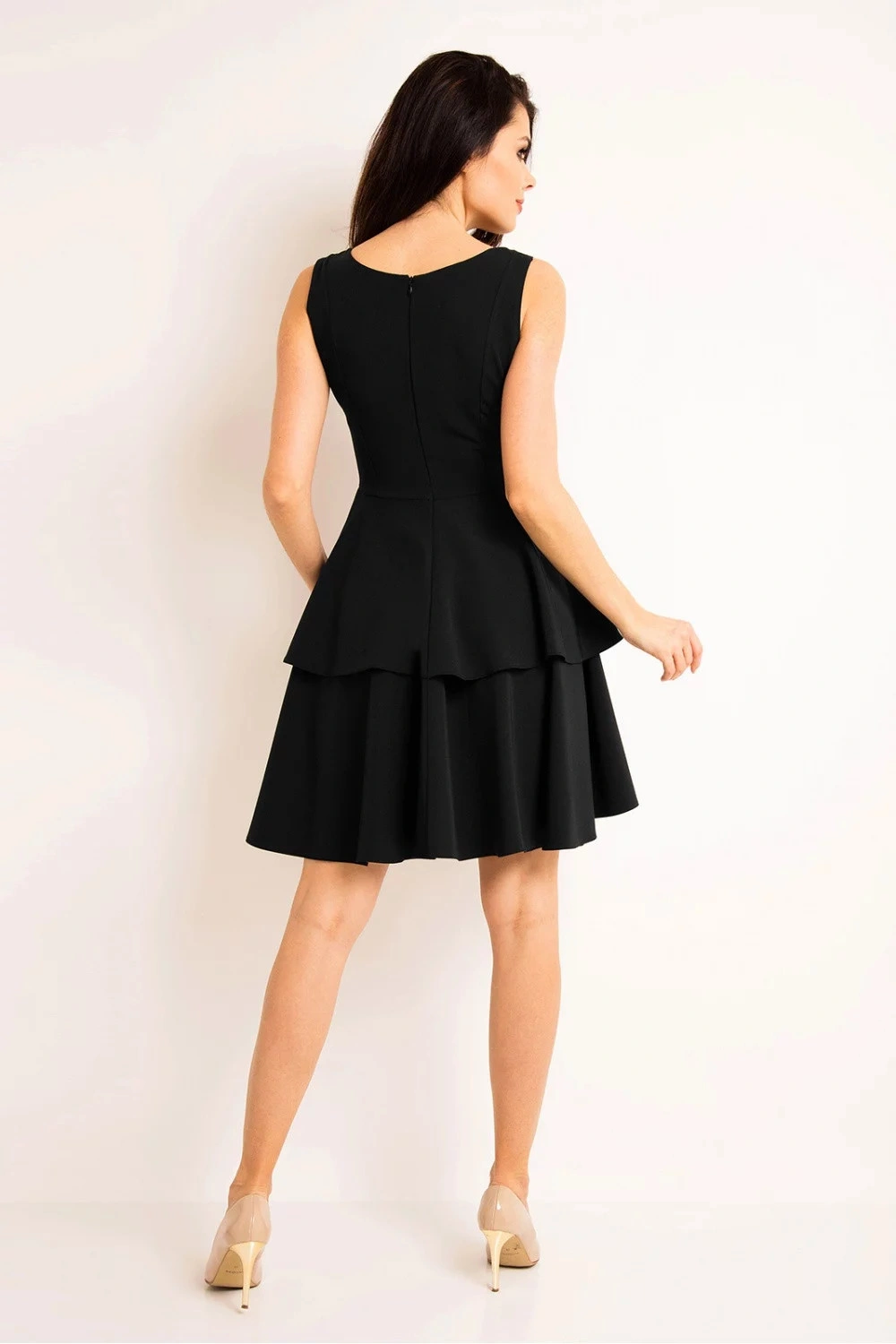 Šaty bez rukávov s krytým zipsom. Vrchný diel priliehavý, spodný mierne rozšírený s volánikmi. Ideálne pre mnoho príležitostí.