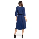 Elegantné asymetrické midi šaty s 3/4 rukávmi. Zadná časť šiat je dlhšia, predná časť je otvorená. Šaty majú elastický pás a opasok vo farbe šiat na zaväzovanie.