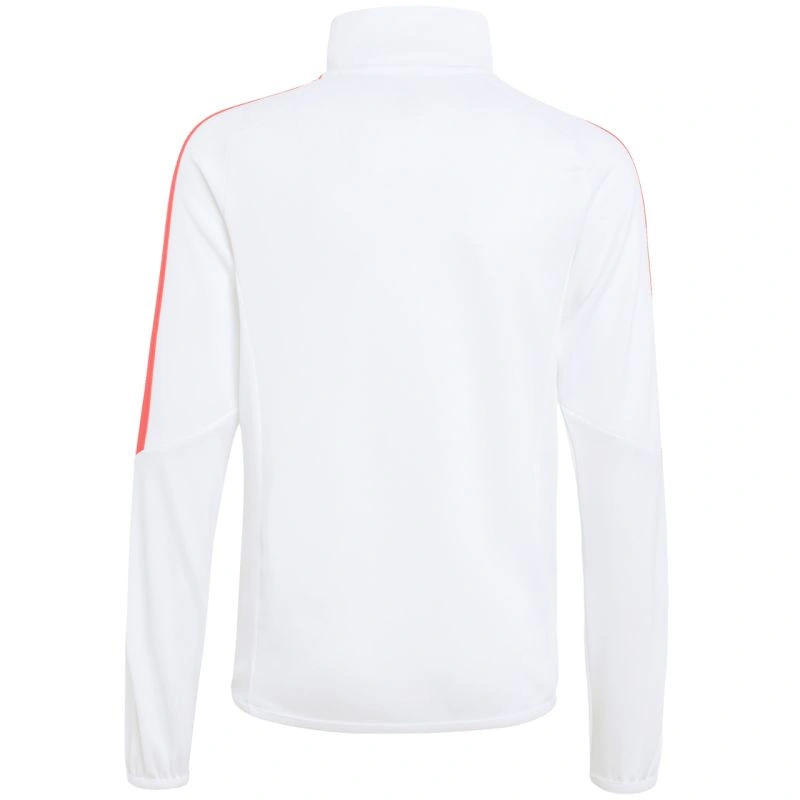 Detská futbalová mikina adidas Tiro 26 League Training Top bielo-červená KR0370 Táto detská futbalová mikina adidas je ideálna na tréning. Krátky zips s ochrannou nášivkou na brade. Prispôsobený strih. Technológia Climacool je funkčné riešenie, ktoré vás udrží v chlade, suchu a sústredení na hru. Elastický lem a manžety. Kontrastné sieťované vložky. Pruhy na rukávoch. Jemné logo na hrudi. 100% recyklovaný polyester.