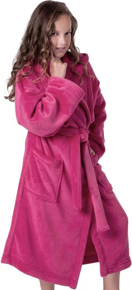 Detský teplý župan s kapucňou a vreckami.