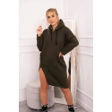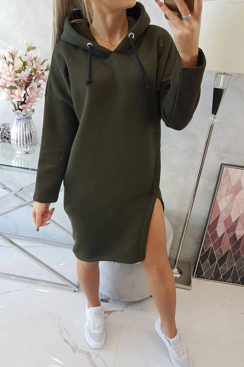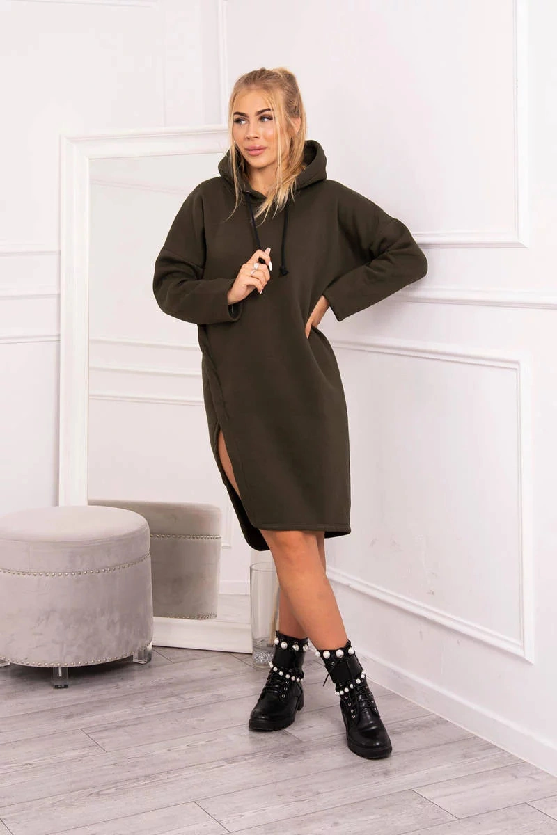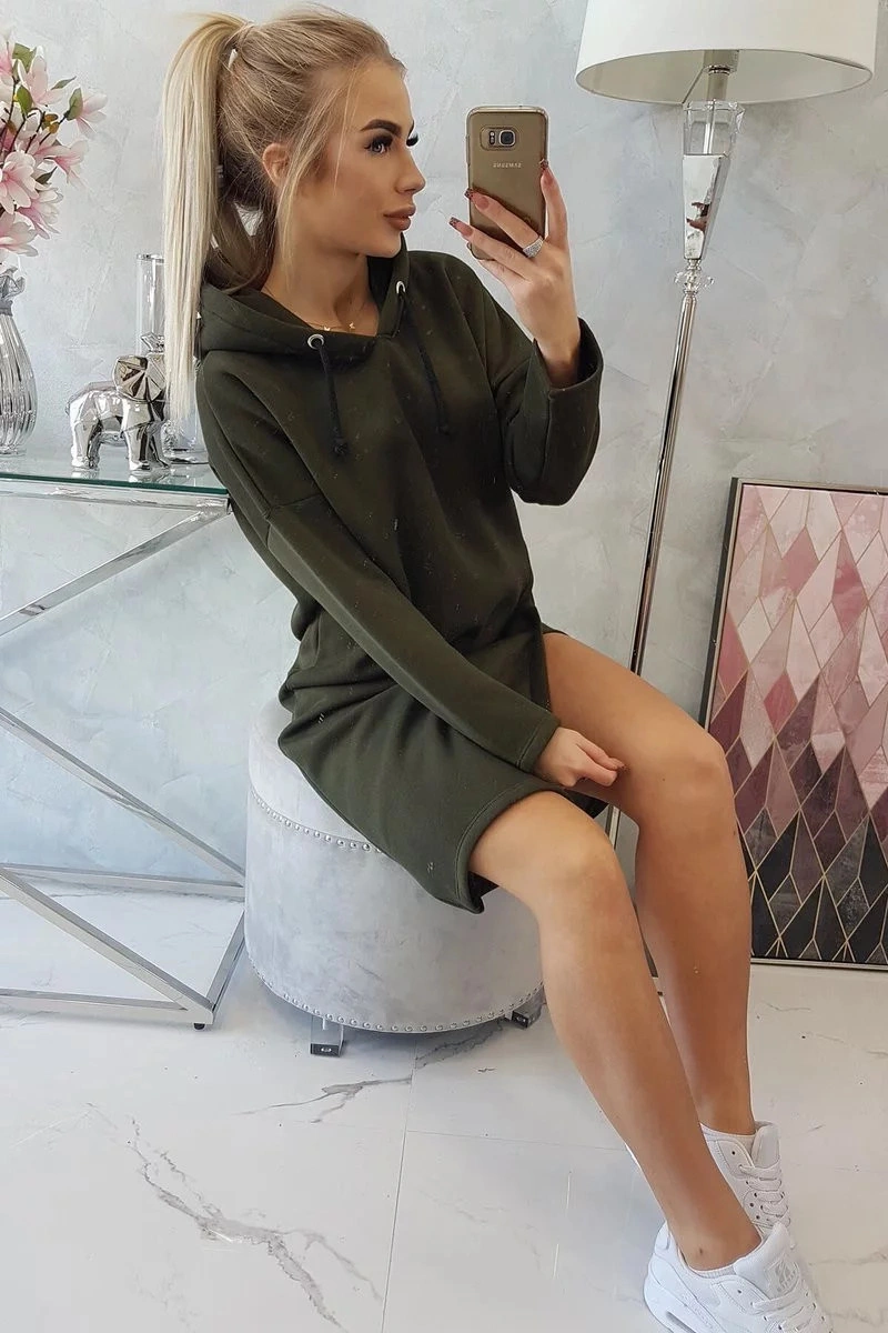 Predstavujeme vám módnu dlhú tuniku s kapucňou. Šaty majú dlhší zadný diel a rozparok na boku. Veľmi zaujímavý dizajn pre každú dámu. Šaty sú vyrobené z kvalitného materiálu. Veľkosť je univerzálna a vyhovuje dámam, ktoré nosia veľkosť S, M alebo L.