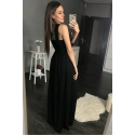 Dlhé éterické šaty bez rukávov v čiernej farbe. Výstrih zdobia svetlé ozdoby. Perfektné na mnohé príležitosti.