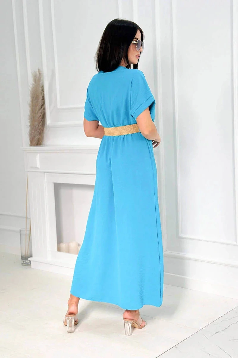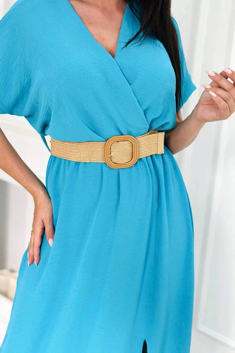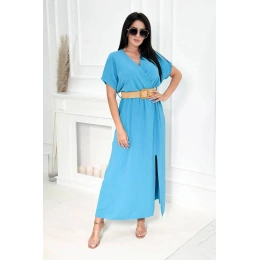 Predstavujeme vám pohodlné šaty s ozdobným opaskom. Šaty majú v spodnej časti rozparek. Šaty sú vyrobené z kvalitného materiálu. Veľmi zaujímavá ponuka pre všetky dámy. Veľkosť je univerzálna a bude vhodná pre dámy, ktoré nosia veľkosť S, M alebo L.