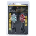 Rozmery svetla: 4 x 2,7 cm (v x š)- Farba: biela, červená- Montážny držiak: univerzálny- Materiál: plast, silikón- Osvetlenie: 1x LED na 1 svetle- 3 funkcie svetla: nepretržité, blikanie, blikanie- CE certifikát: áno- Napájanie: 3 x CR1220, súčasťou balenia.