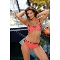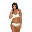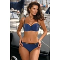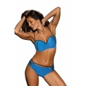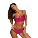 Veľmi ženské a zvodné plavky v jedenástich šťavnatých farbách. Podprsenka v tvare push-up, zdobená zlatom. Nohavičky v strihu pohodlných nohavičiek, spestrené pruhy na bokoch. Ideálne na pláž.