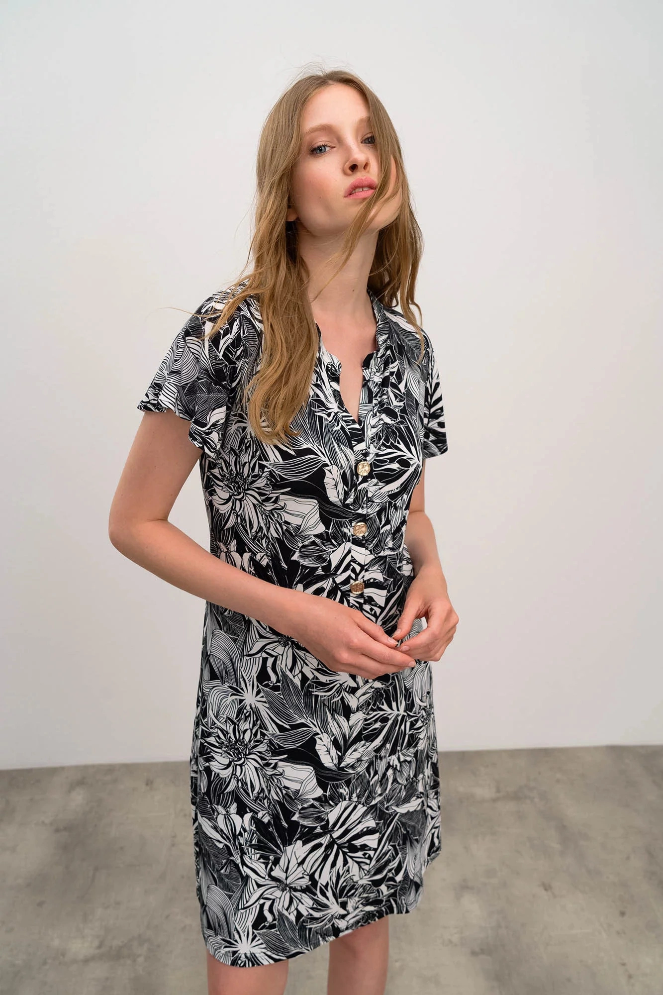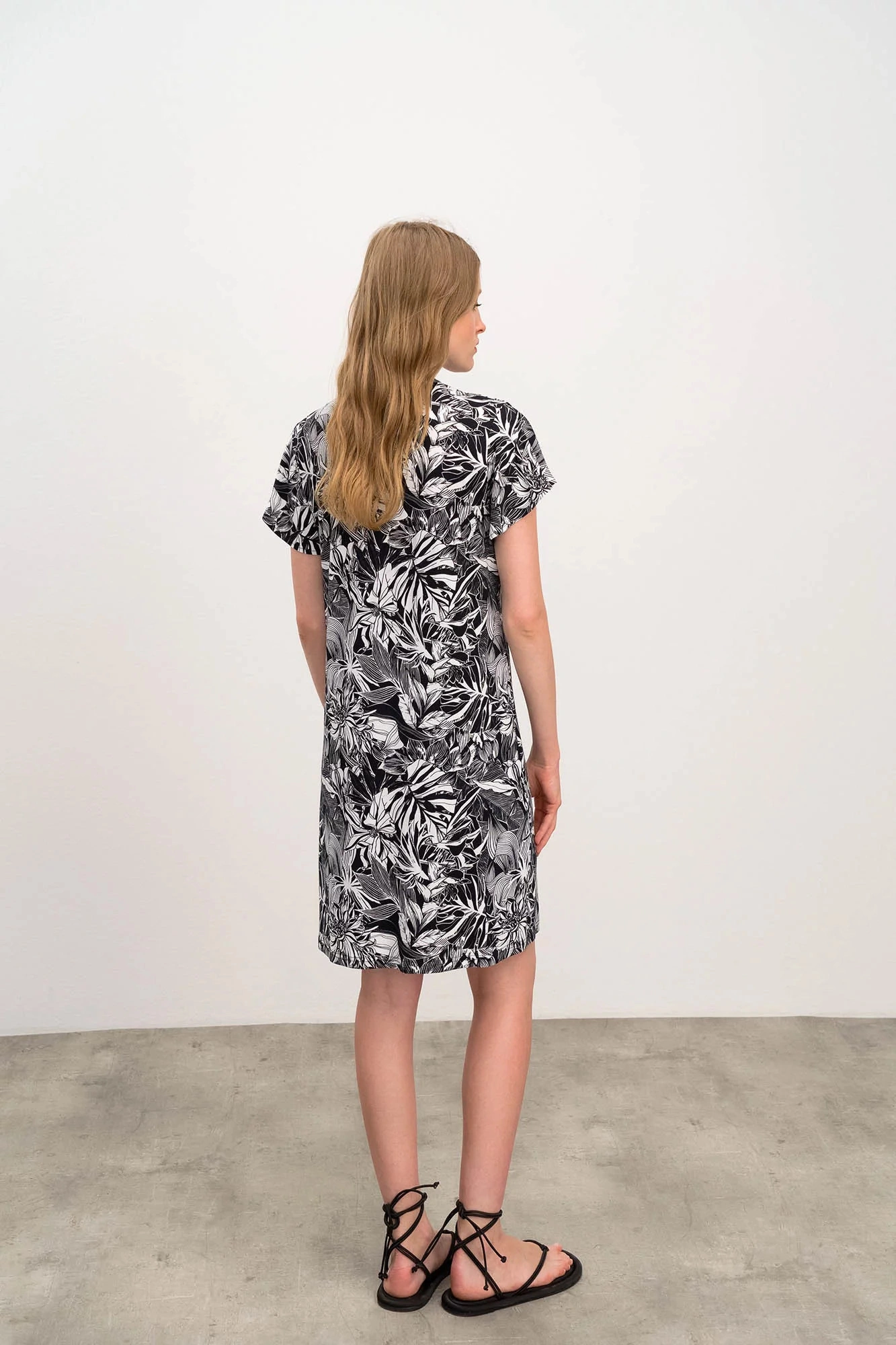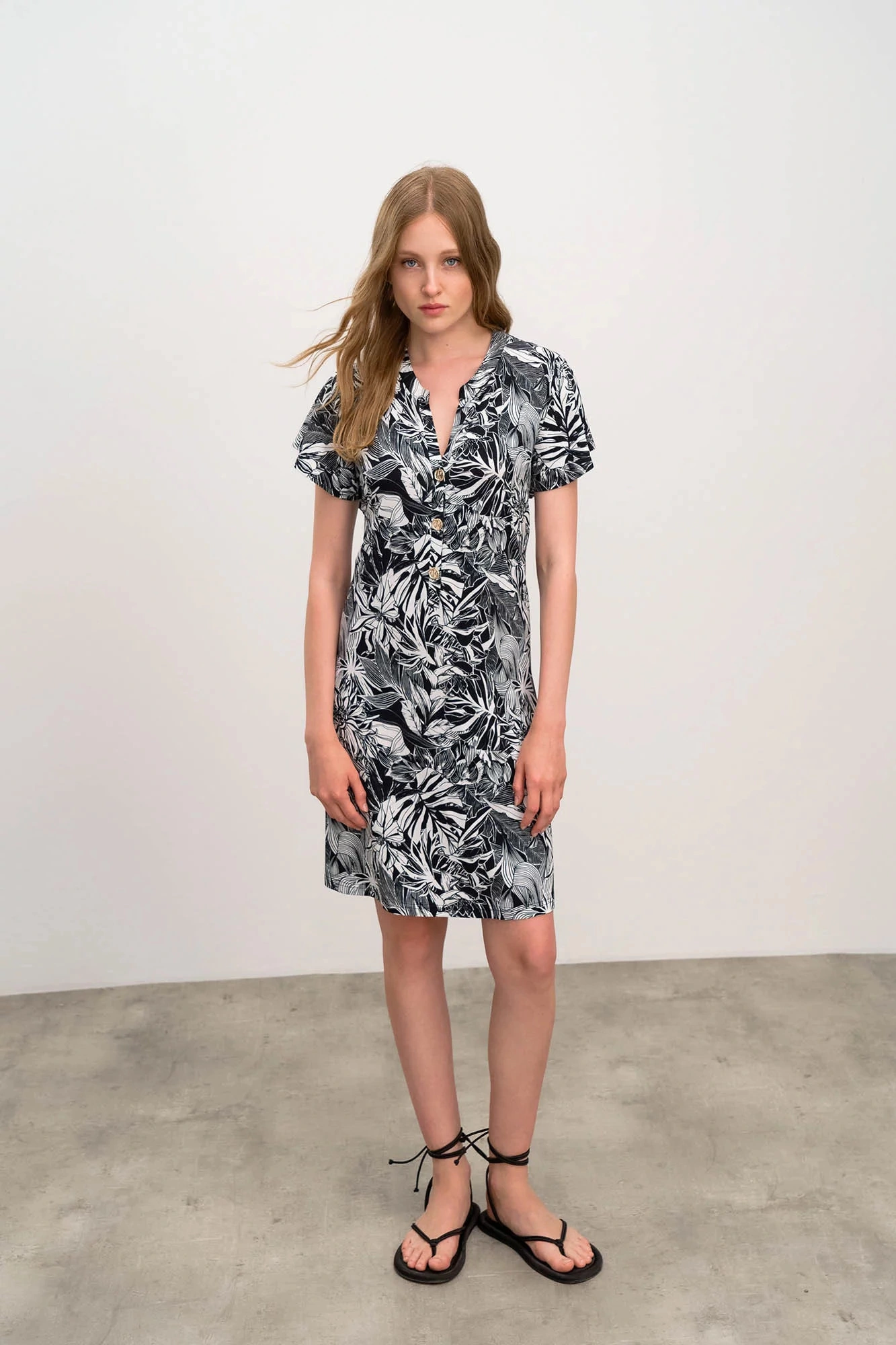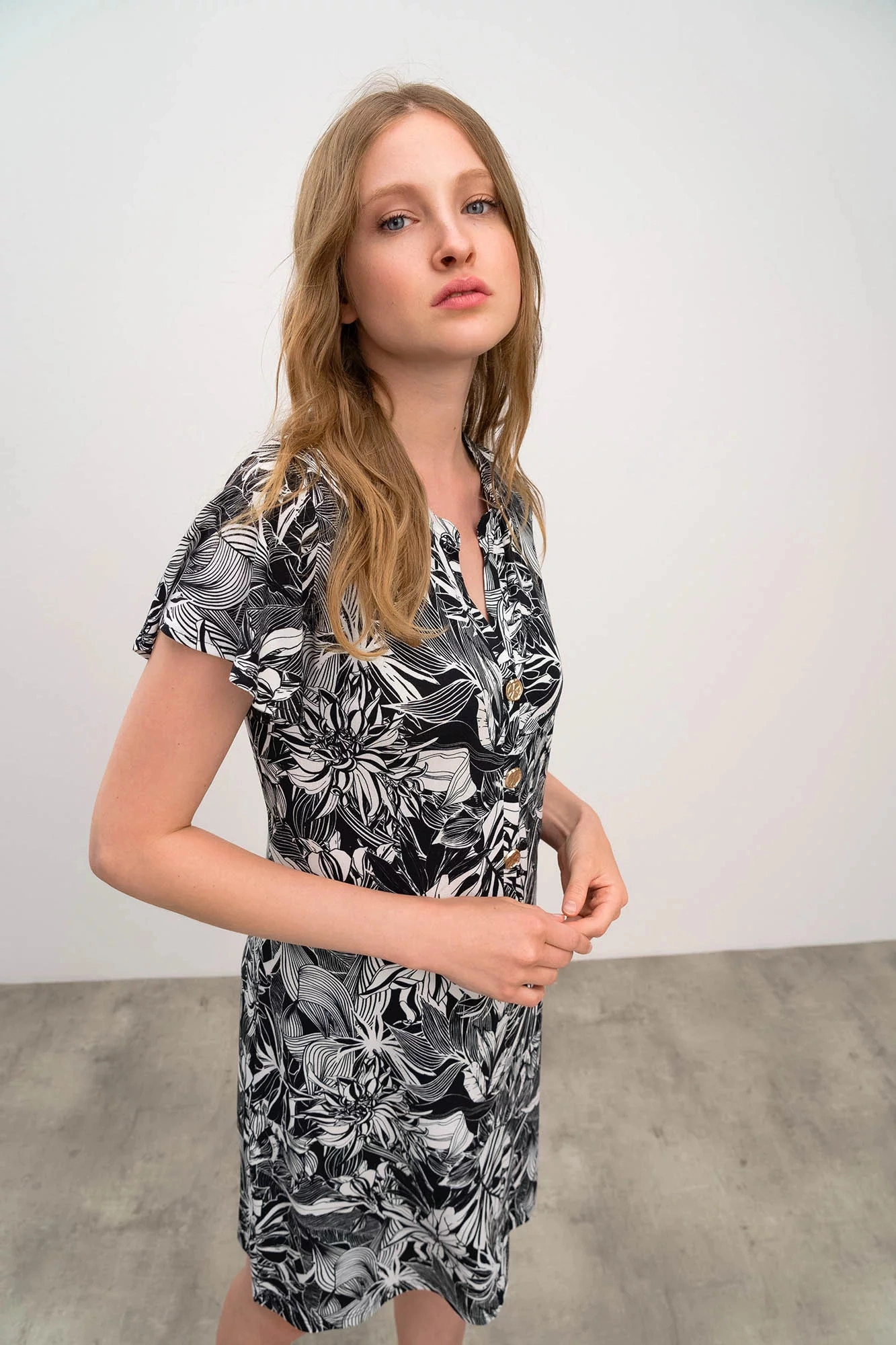 Elegantné dámske šaty s kvetinovým motívom as výstrihom do V, všetko čo žena v sparných letných dňoch potrebuje. Šaty sú vyrobené z kvalitnej jersey viskózy s prímesou elastanu. Jersey viscoza sa vyznačuje vysokou savosťou, je dobre priedušná, mäkká a príjemná na dotyk a elastan zaručuje lepšiu pružnosť tkaniny.