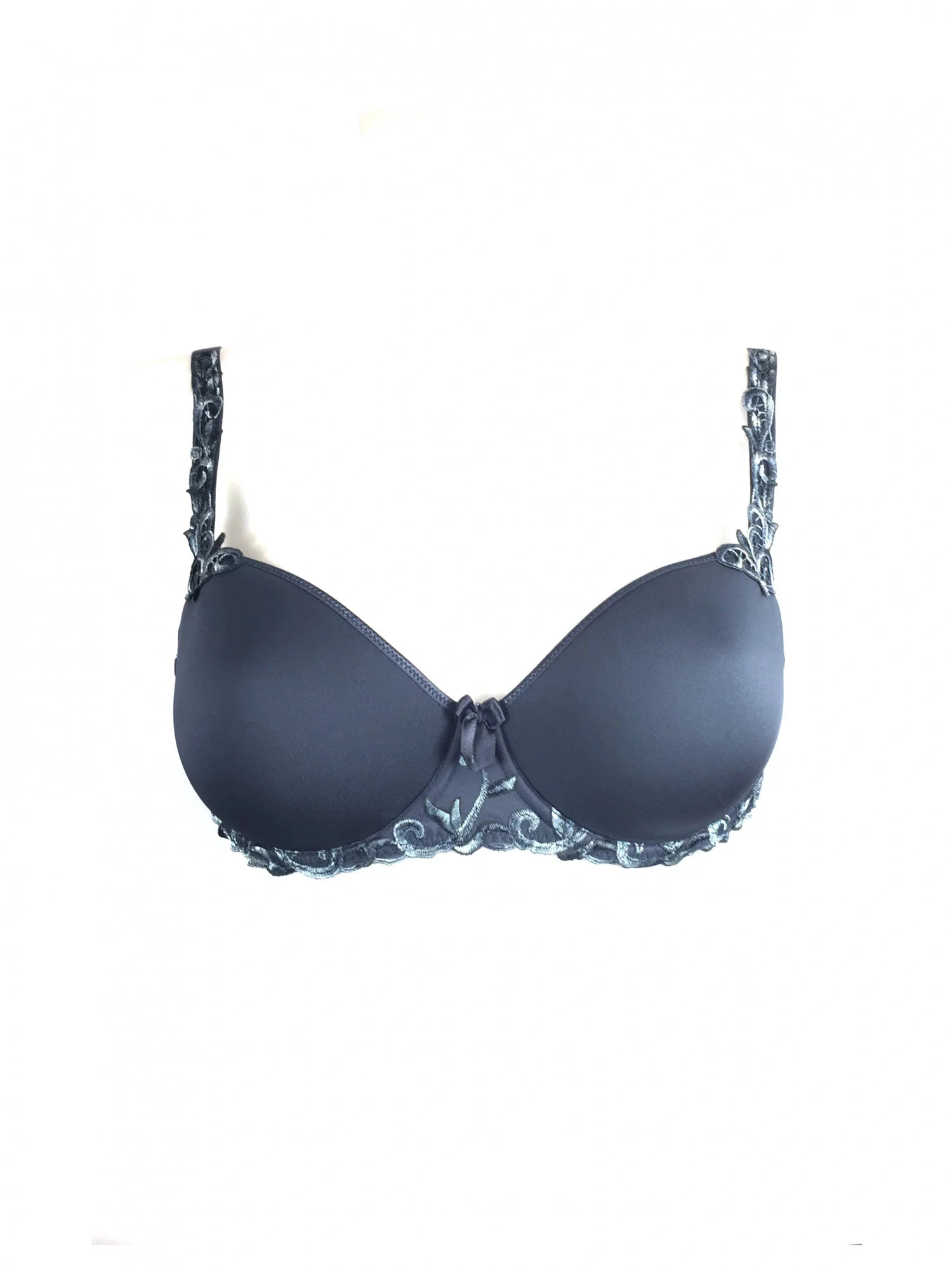 Dámska luxusná tmavomodrá podprsenka s rafinovaným strihom. Spodná časť košíčkov je vystužená, s kos