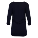 Dámsky sveter s dlhým rukávom, okrúhlym výstrihom s rafinovanými výrezmi na oboch stranách, ktoré dr