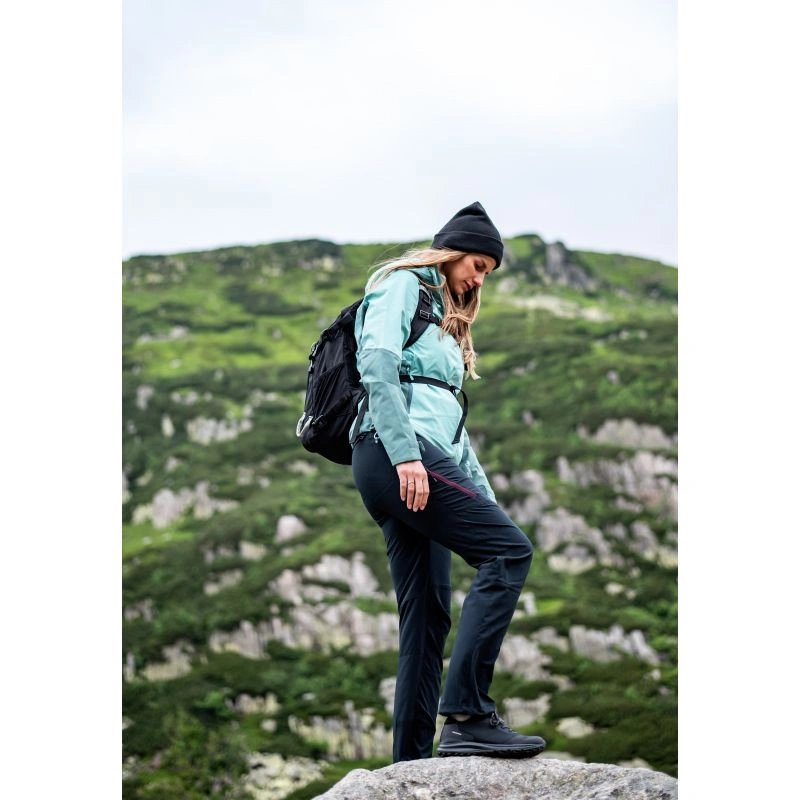 Dámske trekingové nohavice LADY ANON od Hi-Tec boli vyrobené zo syntetických materiálov, ktoré odvádzajú vlhkosť a rýchlejšie schnú. Spodná časť nohavíc bola zakončená zosilnenou tkaninou, ktorá chráni pred odieraním. Štvorsmerná elastická tkanina sa prispôsobí telu a neobmedzuje v pohybe. Dámske nohavice LADY ANON majú vrecká na zips, do ktorých môžete bezpečne uložiť drobnosti. Šnúrka na stiahnutie v spodnej časti nohavíc umožňuje optimálne prispôsobenie nohavíc trekingovej obuvi.