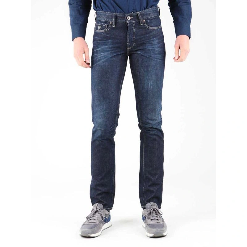 Pánske džínsy so zúženou nohavicou a zapínaním na gombíky. Veľké vrecká na prednej a zadnej strane. Kožené logo Guess na zadnom páse. Materiál: 100% bavlna