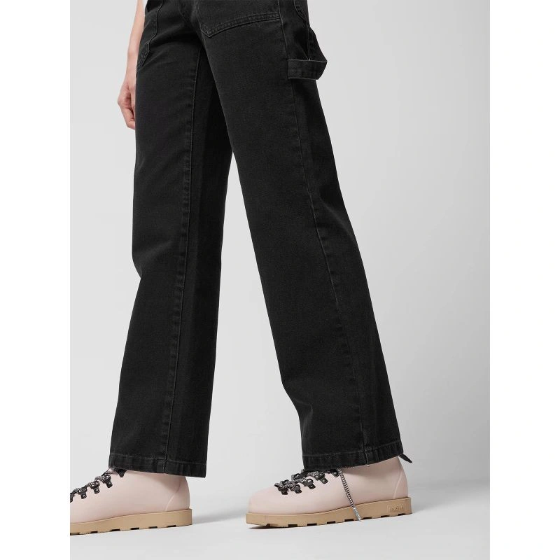 Džínsové nohavice s vysoko posadeným pásom s pútkami na opasok, zapínaním na zips a gombík, veľkými otvorenými vreckami vpredu, tromi vreckami vzadu a pútkom na opasok inšpirovaným pracovnými nohavicami. Sú vyrobené z bavlnenej tkaniny, materiál bol opraný, takže nie je tuhý, dobre sedí a je príjemný na dotyk. Na pútku na opasok je vyšité jedinečné číslo modelu, ktoré označuje strih a sezónu džínsov.
