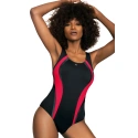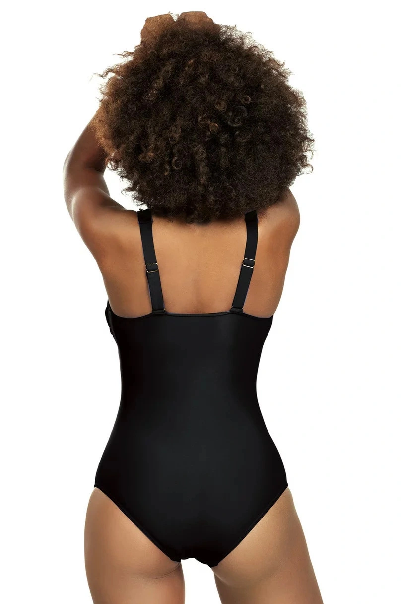 Plavky majú mäkko podšité košíčky. Pod prsiami je špeciálna guma, ktorá pekne nadvihne poprsie. Predný diel modelu je strihaný tak, aby zoštíhlil postavu. Plný zadný diel tiež zoštíhľuje postavu. Dĺžku ramienok je možné nastaviť. Plavky sú vyrobené z kvalitného materiálu, ktorý rýchlo schne a je odolný voči chlóru a slnečnému žiareniu. Model sa ideálne prispôsobí postave. Plavky sú vhodné do bazéna aj na pláž.