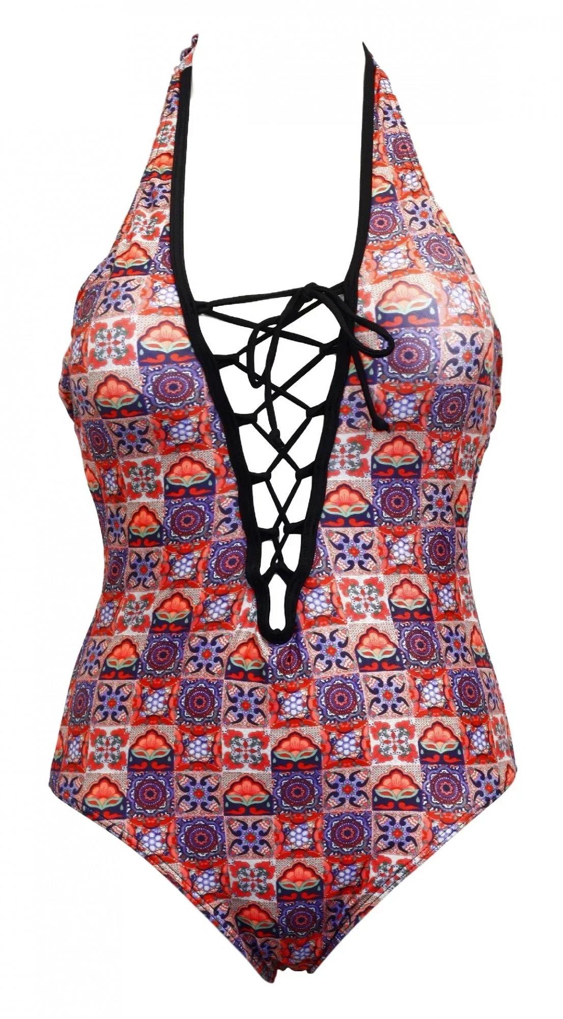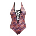 Jednodielne plavky - línia poprsia a popruhy z mikrovlákna s exotickými kvetmi - spodná časť a zadná