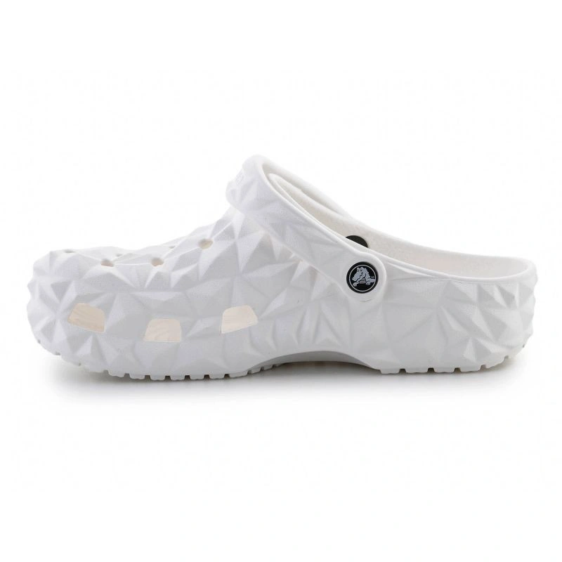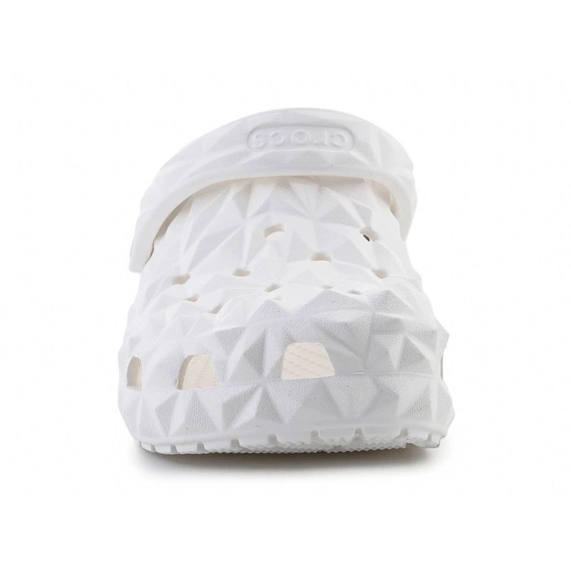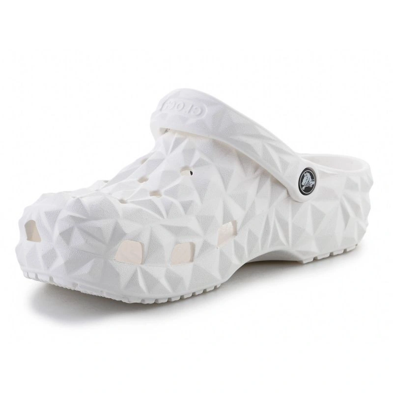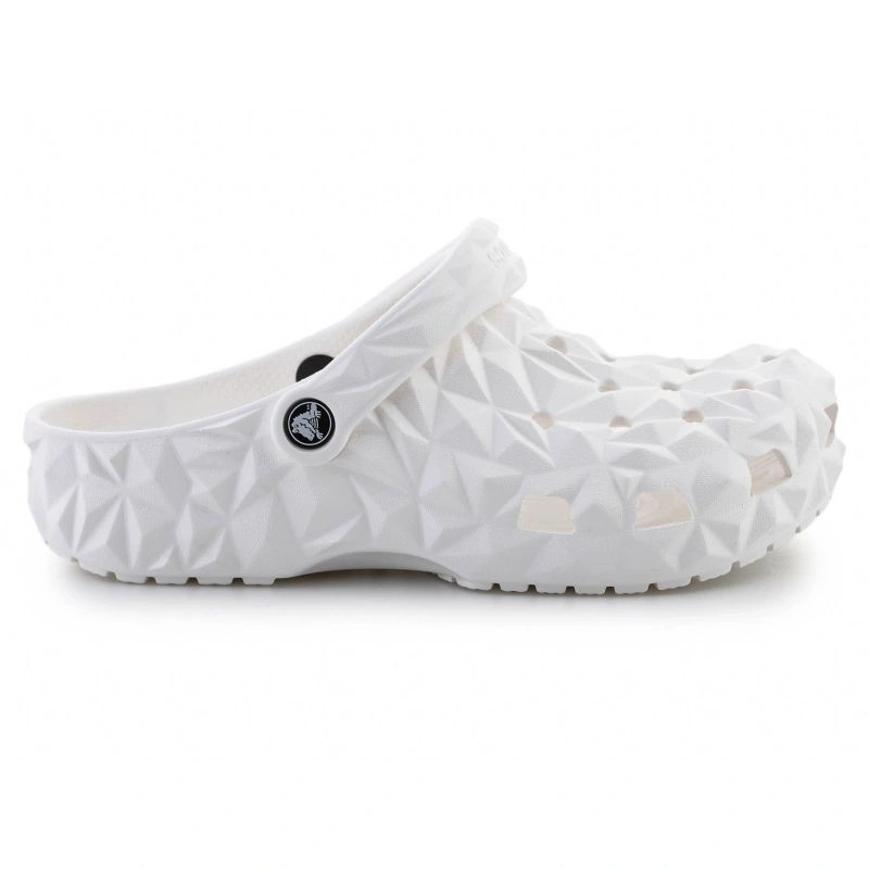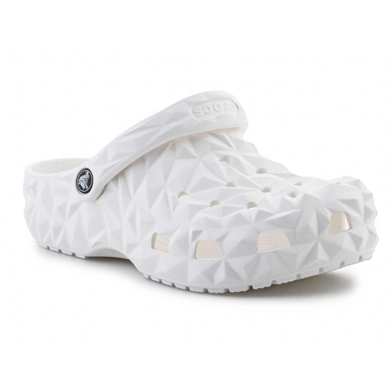 - Crocs Classic Geometric Clog 209563-100 v bielej farbe je moderná verzia ikonických geometrických drevákov Crocs.