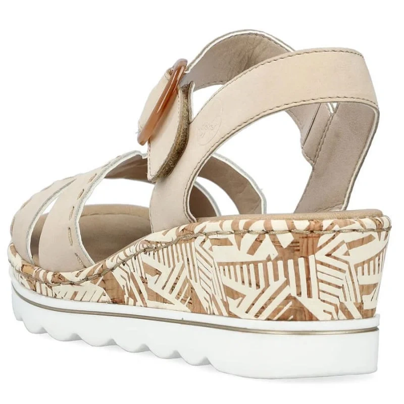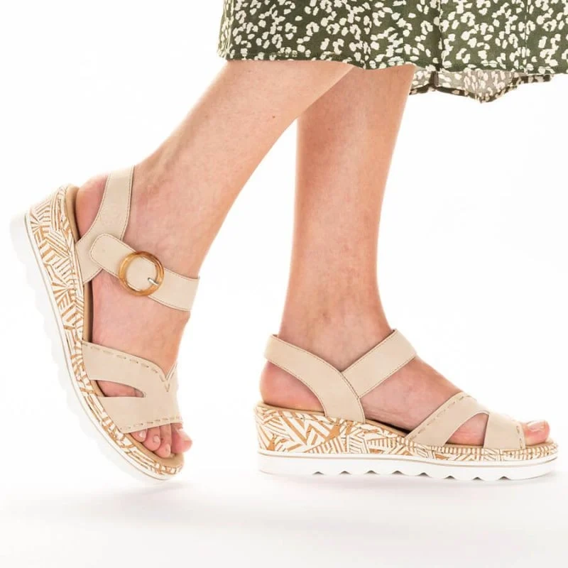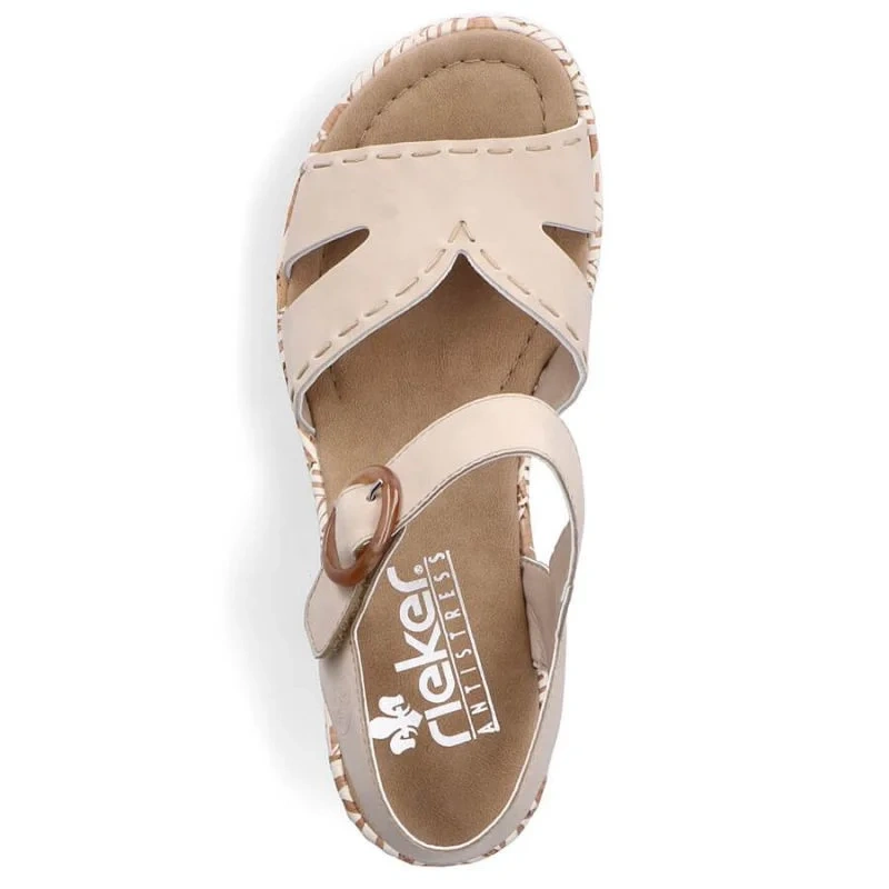 Rieker W RKR595 béžové pohodlné sandále na platforme s podpätkami