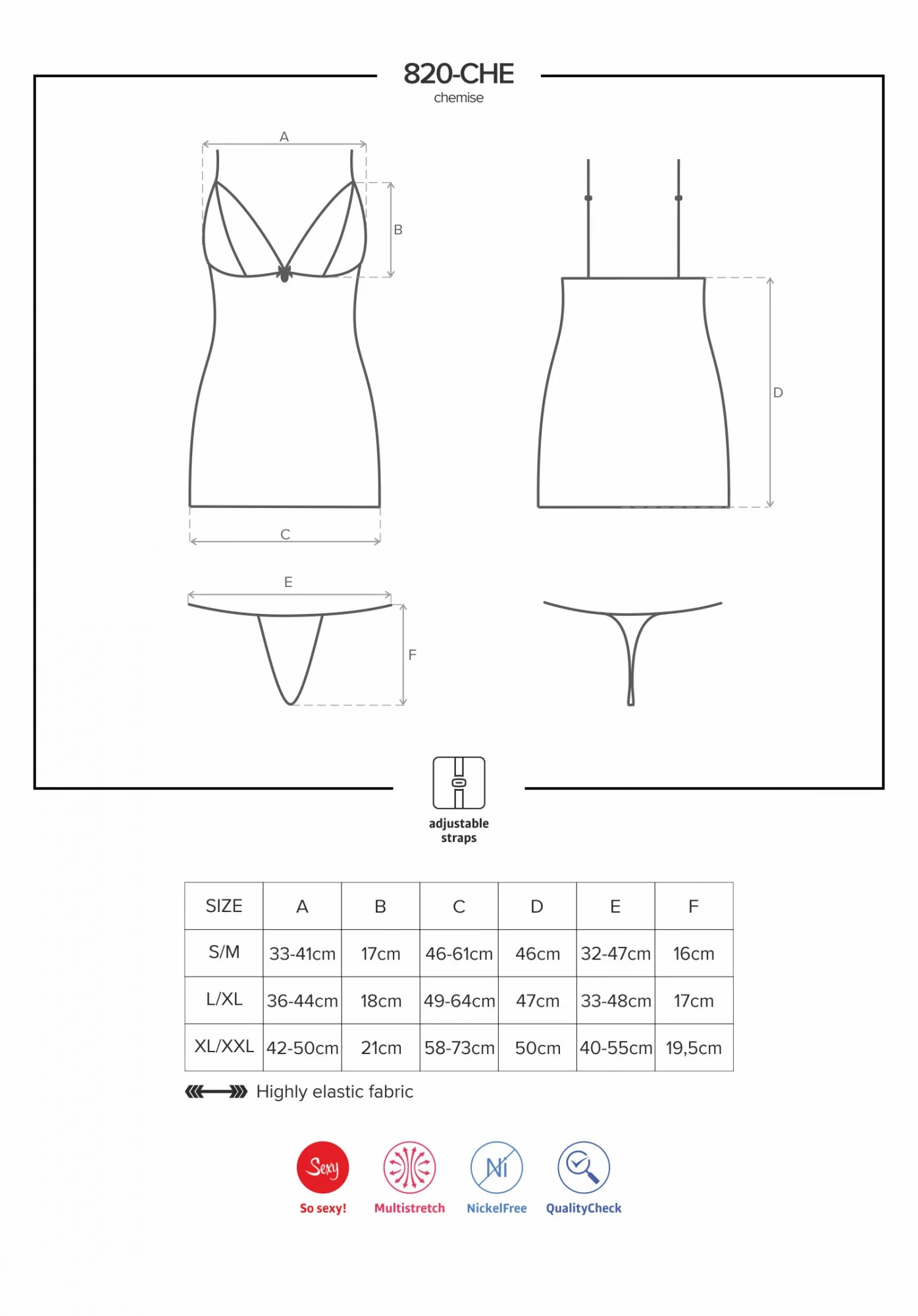 Košieľka 820-CHE chemise - Obsessive