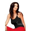 Dámsky krátky top na špagetové ramienka, vzadu ramienka rafinovane spojené. Na boku topu našité logo